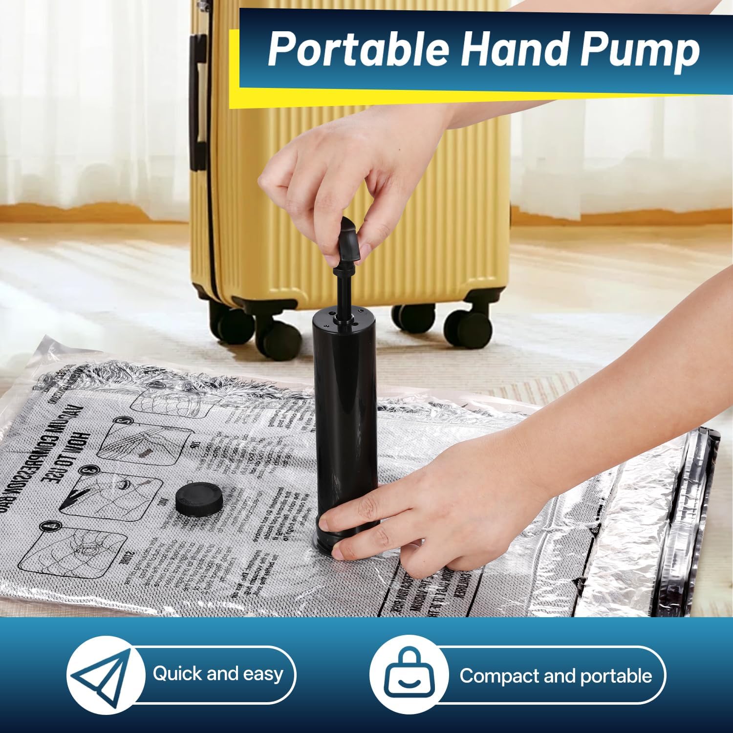 - Portable Hand Pump: Convenient for travel and easy to use. Our vacuum bags work with vacuum cleaners and electric pumps.