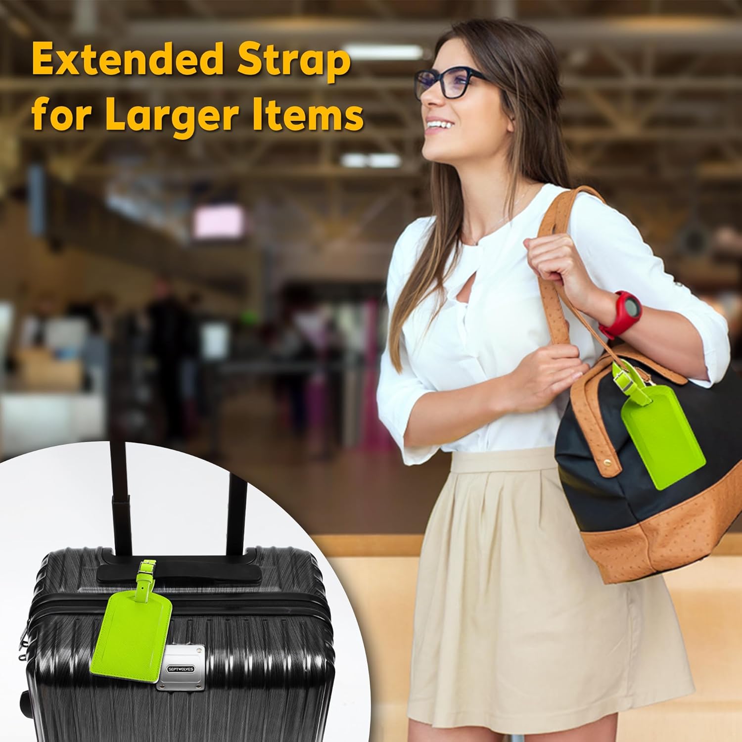 - Durable & Practical: Crafted from premium faux leather,these travel tags are designed to be both hard-wearing and stain-resistant, combining lasting durability with stylish appeal.Our bag tags feature an extended strap for easy attachment to large items, ensuring they can withstand multiple long-distance trips