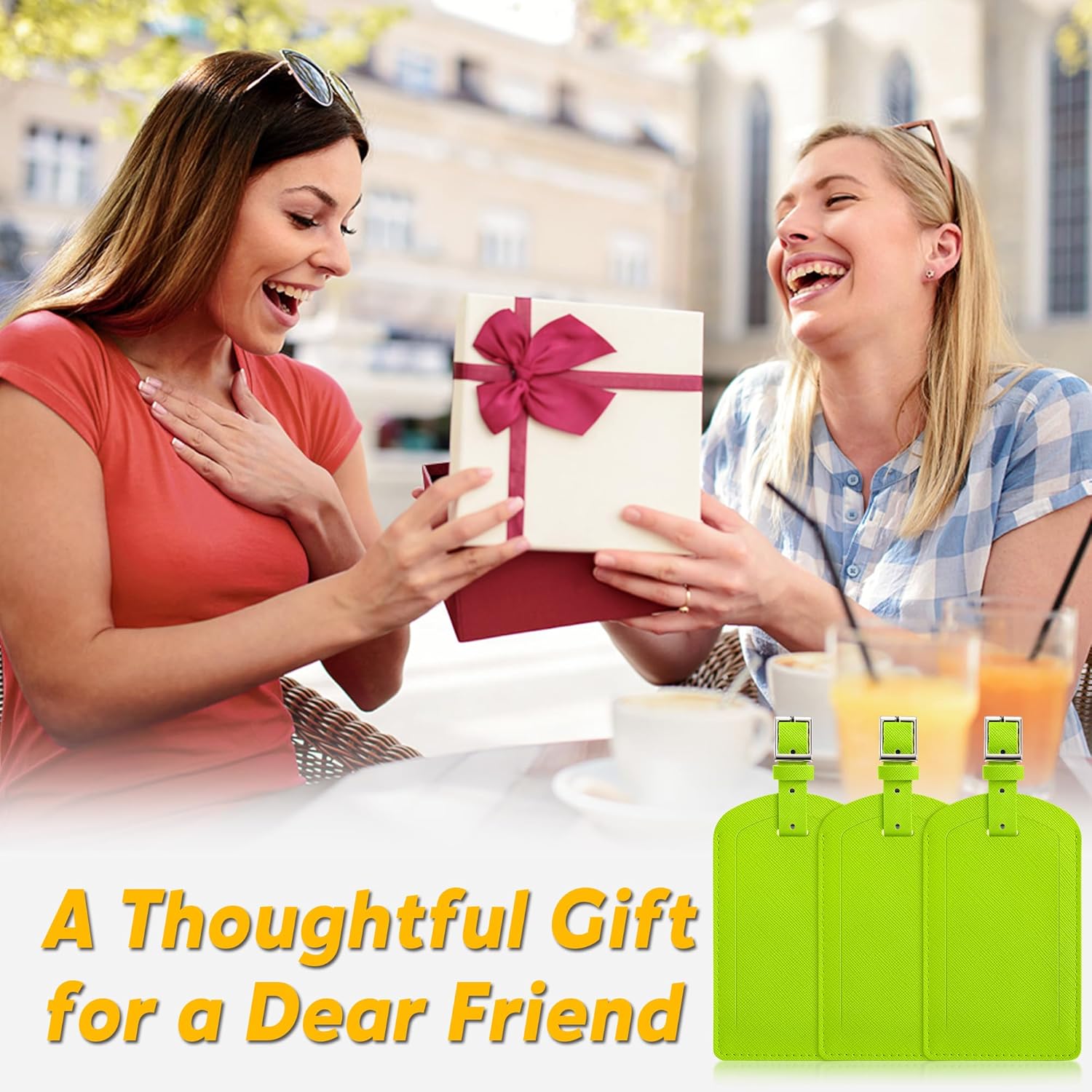 3 Pack Luggage Tags for Suitcases, TSA Approved Bag Tags, Baggage Tags with Privacy Protection, Travel Essentials Luggage Accessories, Neon Green