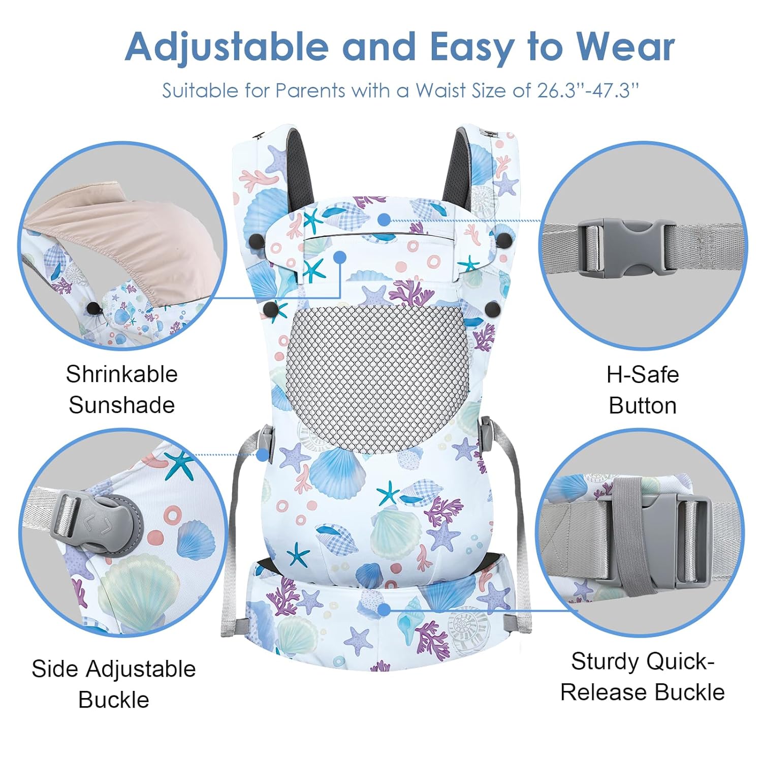 - Adjustable & Easy to Wear: These baby carriers are designed with an adjustable size, suitable for parents with a waist 26.3"-47.3"(67-120 cm). The sturdy quick-release buckle combined with the cross back โXโ buckle makes it safe and easy to use. Suitable for babies from 7-66 lbs(3-36 months)