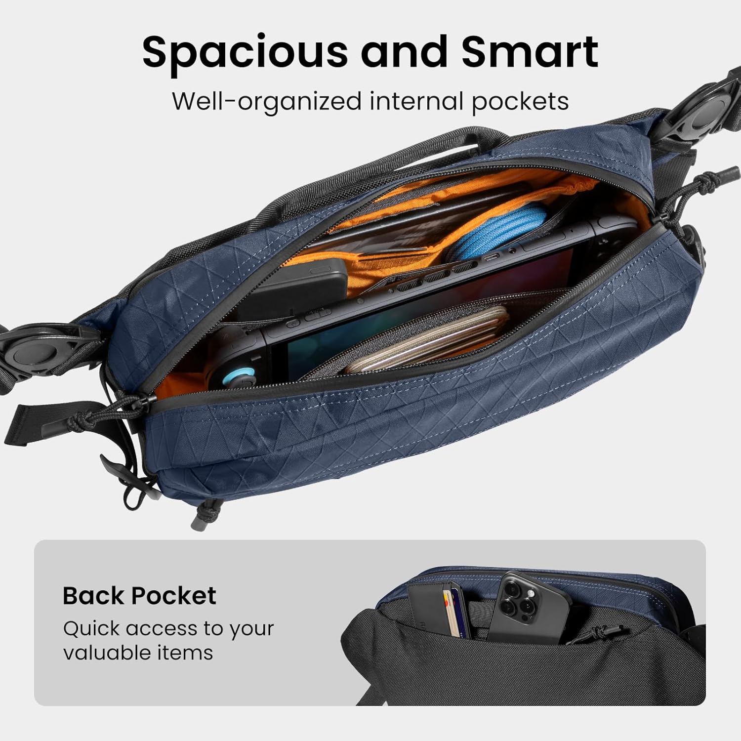 - Superior Protection for Necessities: Designed for urban explorations or short trips, this sling features a cushioned compartment designed for devices such as the Nintendo Switch 2/Steam Deck OLED/ASUS ROG Ally/ASUS ROG Ally X/Legion Go/PlayStation Portal /iPad Mini/DJI Osmo Pocket 3/DJI Osmo Mobile 6/DJI Action 3/4/GoPro(For added handheld game console joystick protection, using a slim case is advised)