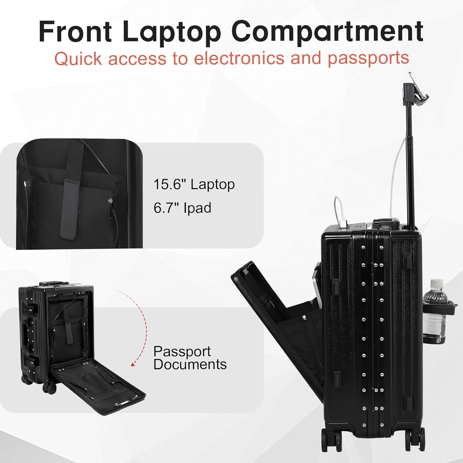 - TRAVEL ESSENTIALS EASILY REACHABLE: Conveniently access your electronic devices passport, snacks or other essentials with carry on luggage with laptop compartment; suggested maximum laptop size of 15.6 inches.