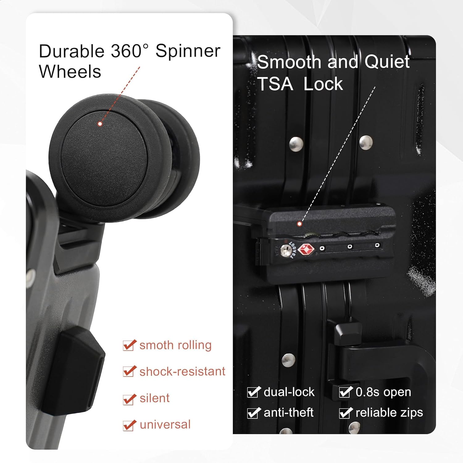 - SECURITY AND EFFORTLESS MOBILITY: VentureVault TSA approved carry on luggage features the TSA dual-lock system to keep your belongings safe on trips; 360° dual spinner wheels for silent and smooth rolling.