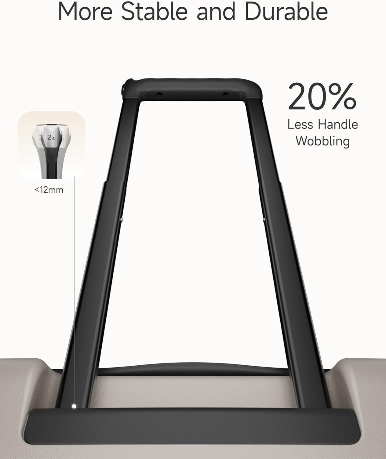 - Engineered Equilibrium – 10% Expandable Capacity, 100% Steady Glide. Our telescopic handle achieves a 12mm maximum wobble deviation, 20% outperforming the industry standard. Beyond that, the gravity-calibrated architecture of the LuggeX HUP3 suitcase maintains perfect load-stability harmony, eliminating wobbles even when fully packed – moving as one with your journey.