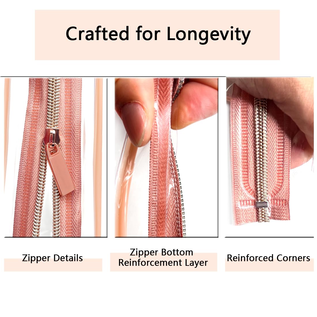 Clear Toiletry Bag, 3 Packs TSA Approved Water resistant Travel Organizer, Airport Airline Travel Essential Carry On Makeup Cosmetic Bags for Women, RosePink - 3 packs