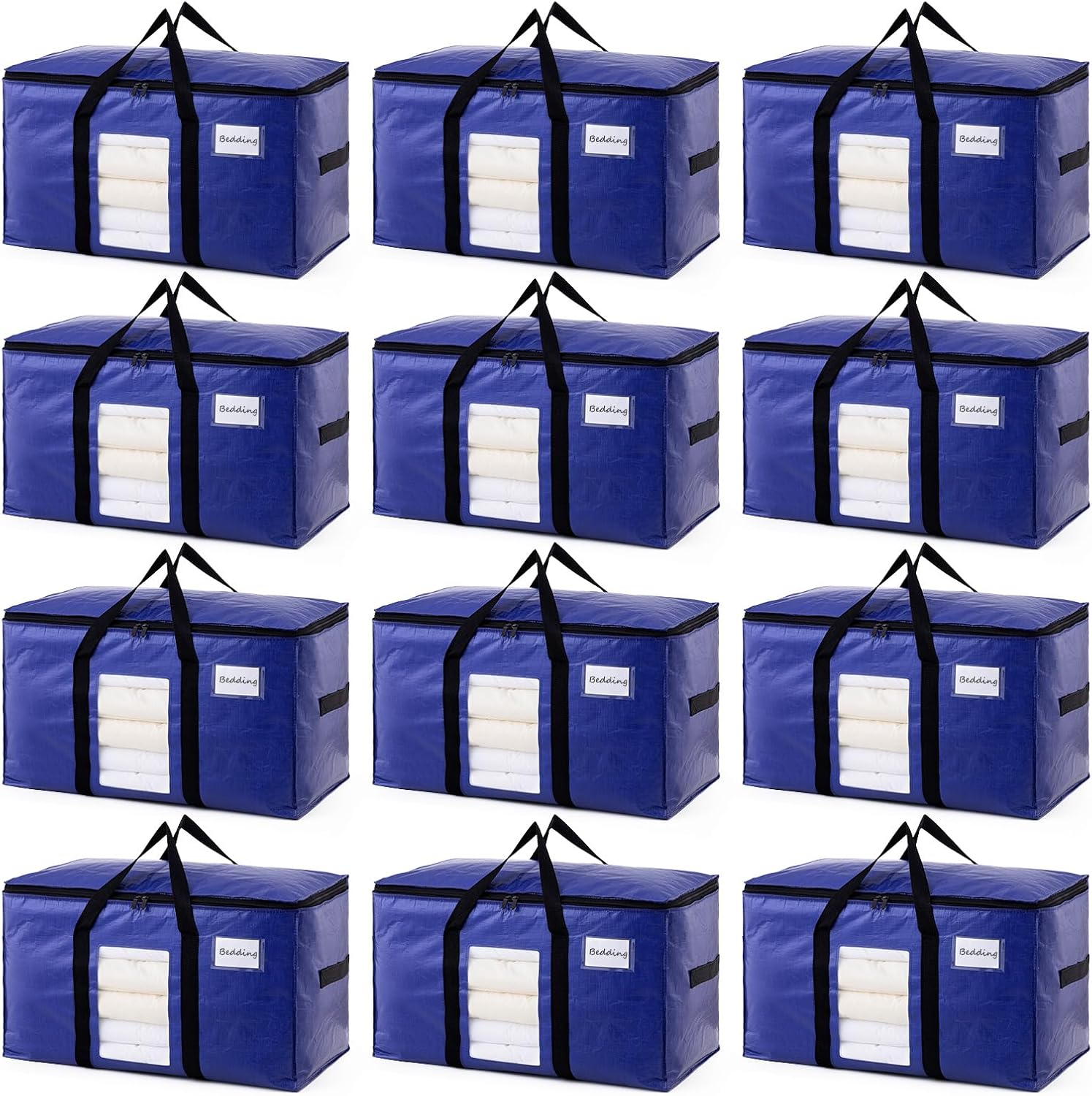 TAILI 12 Pack Dark Blue Extra Large Moving Bags, Heavy Duty Totes with Visible Window, Wrap Around Handles, Great for Space-Saving