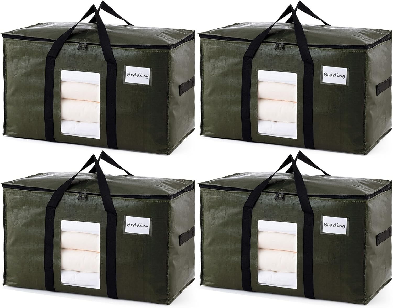 TAILI 4 Pack Green Extra Large Storage Bags, Heavy Duty Totes with Visible Window, Wrap Around Handles, Perfect for Moving