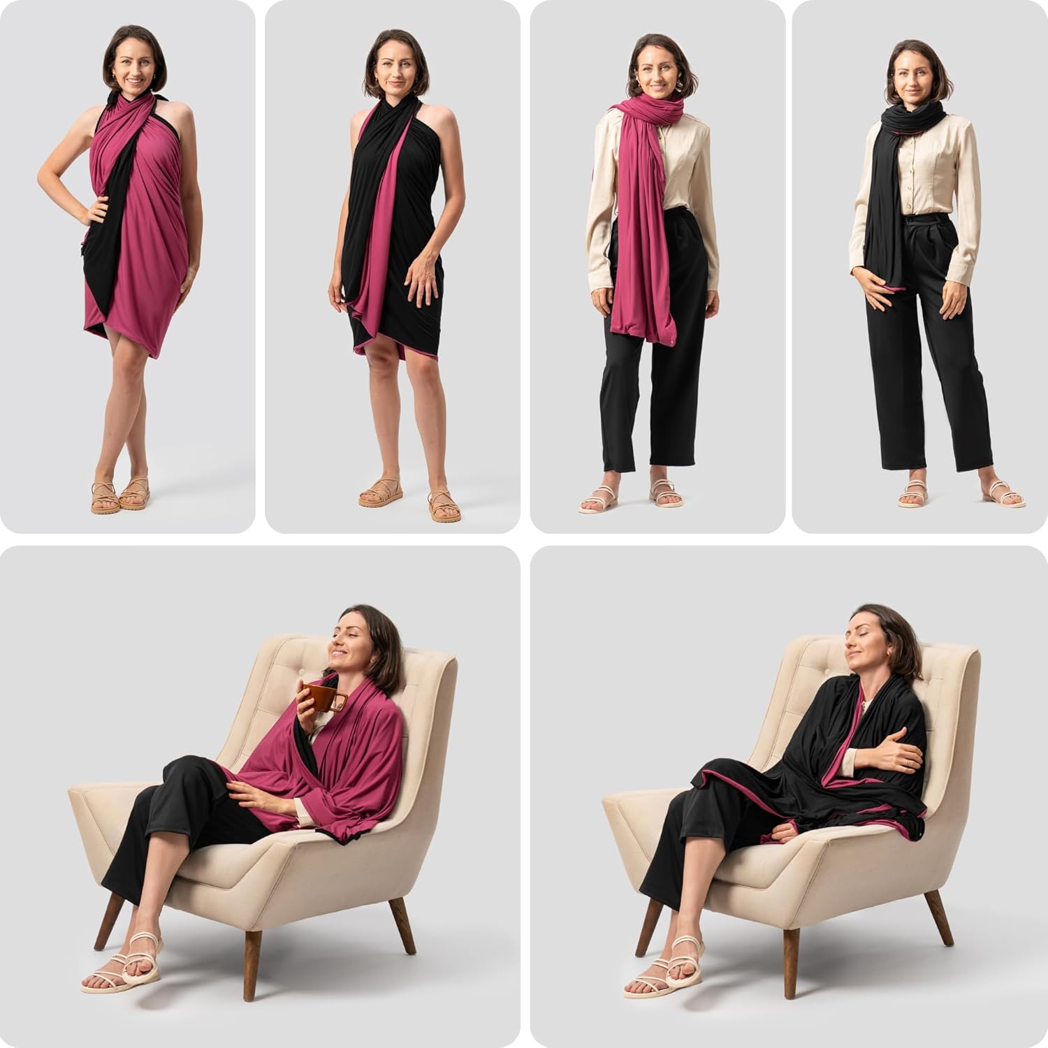 - 16-in-1 Versatile Travel Blanket: Use this compact blanket with bag as a reversible scarf, shawl, sarong, picnic blanket, nursing cover, pillow, or even cape. With a hidden zipper pocket to secure valuables, it's a must-have airplane travel essential for long flights.