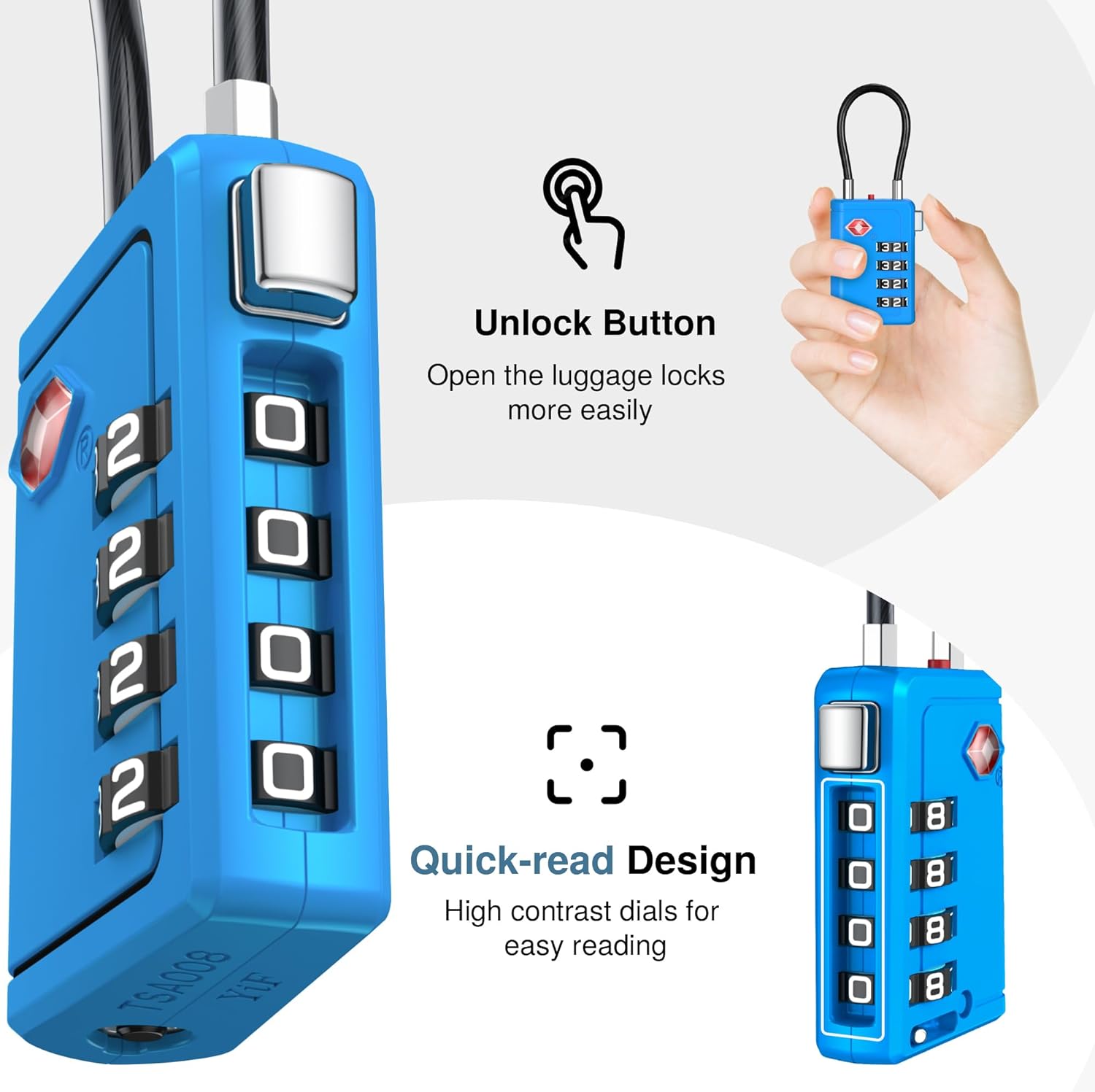 - Flexible & Versatile Cable Lock: The durable steel cable is flexible enough to fit through zippers and lock holes easily and strong enough to secure suitcases, backpacks, gym lockers, gun cases and equipment cases. Its adaptability makes this TSA locks for luggage perfect for travel, work, and daily life.