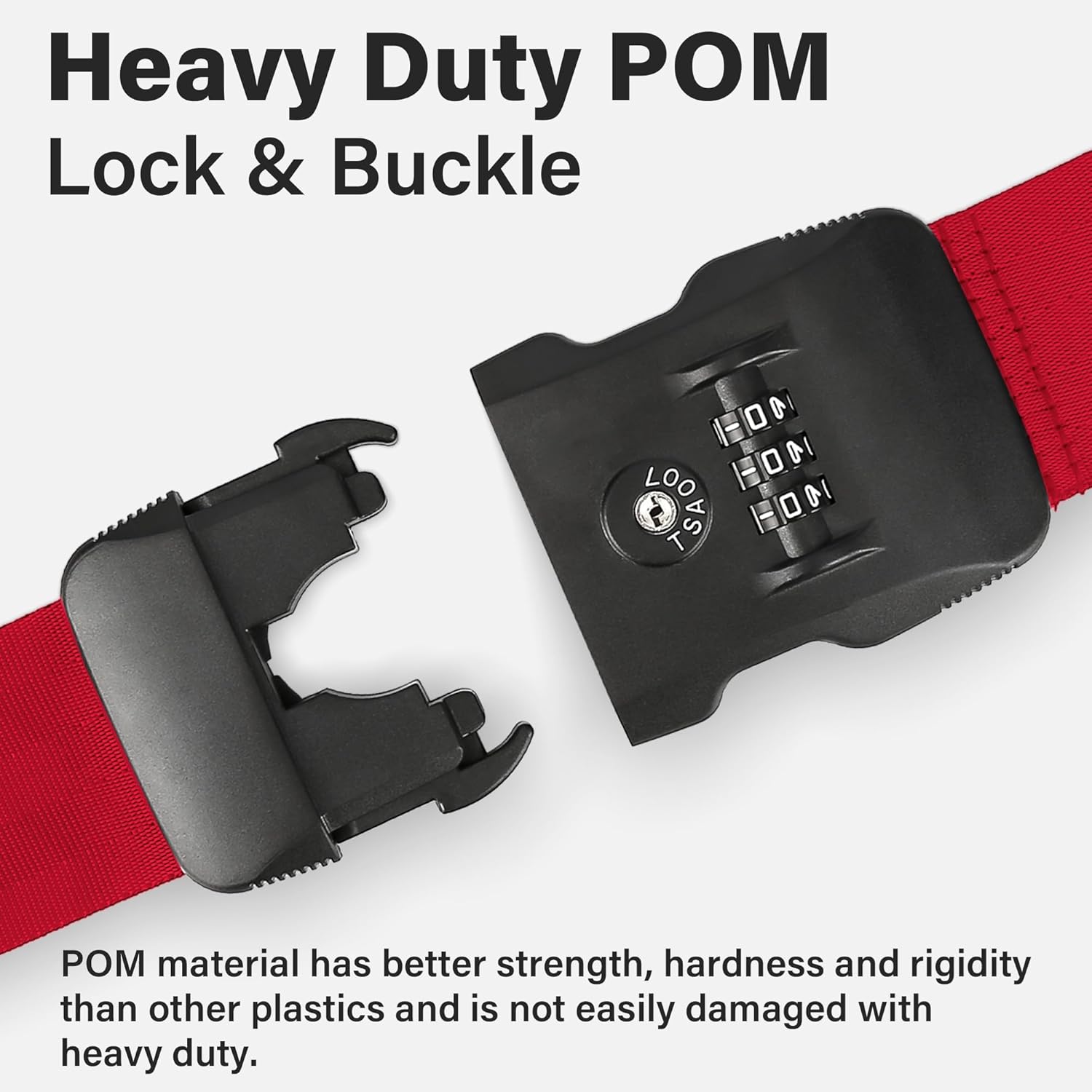 - Combination Lock and POM Buckle - This luggage straps for suitcases feature a durable combination lock and sturdy POM buckle, ensuring your suitcases stay safe. These luggage strap offer long-lasting protection and peace of mind on every journey. Whether you're checking in or cruising through the airport, this luggage cross strap provide the perfect blend of security and convenience.