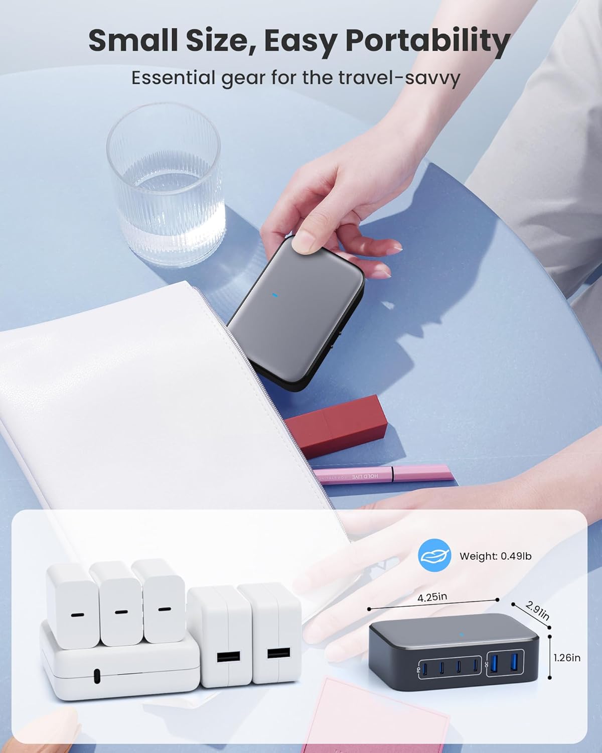 - ăPortable USB C Charging Hub for travelă Small size saves you 50% space and fits easily into handbags and travel cases. The design with 1.5M/5FT AC extension power cord allows you to charge as you want without worrying about the limitation of distance