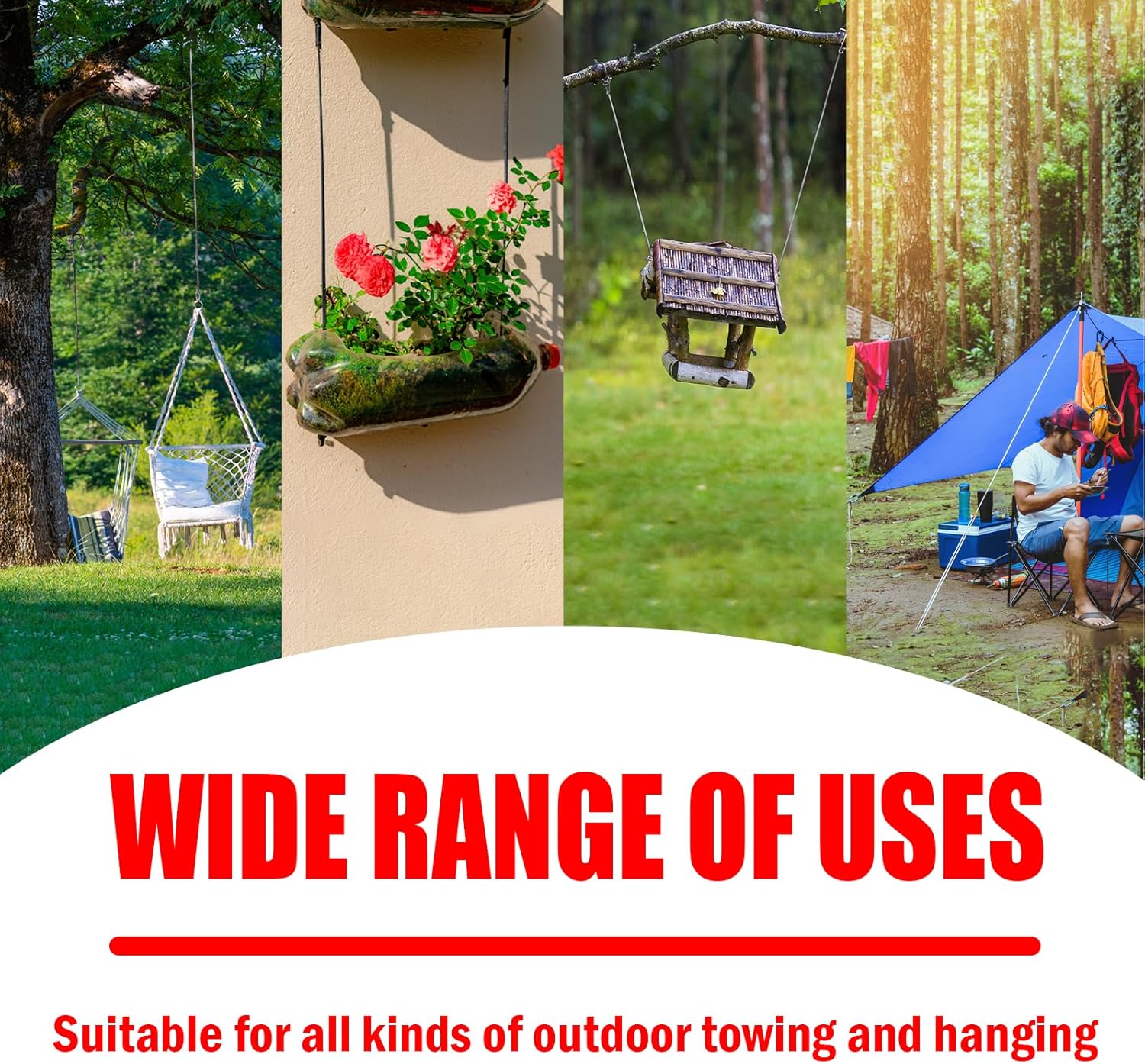 - HIGH-QUALITY MATERIALS: The surface is coated with nylon, and the interior is woven with high-strength steel wire. With a thickness of 1/8 inch and sturdy hooks, it is wear-resistant and corrosion-resistant, and can withstand outdoor wind, sun and humid environments. It is not easy to break or deform even with long-term use.