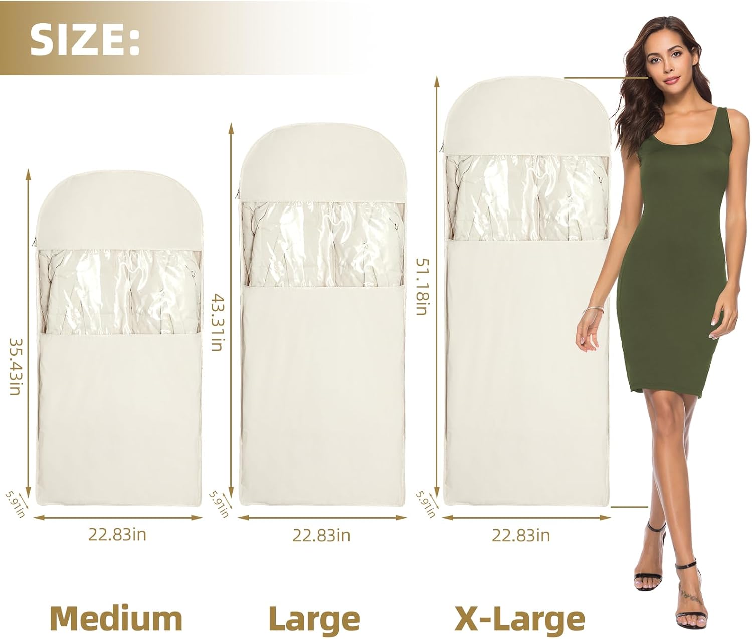 - IDEAL GIFT FOR FAMILY: Available in M (35.43 inches), which is suitable for storing clothes with a length up to the hip area; L (43.31 inches), which is suitable for storing clothes with a length up to the thigh area; and XL (51.18 inches), which is suitable for storing clothes with a length up to the calf area. Space saver bag meet your daily Garment Protector Cover.