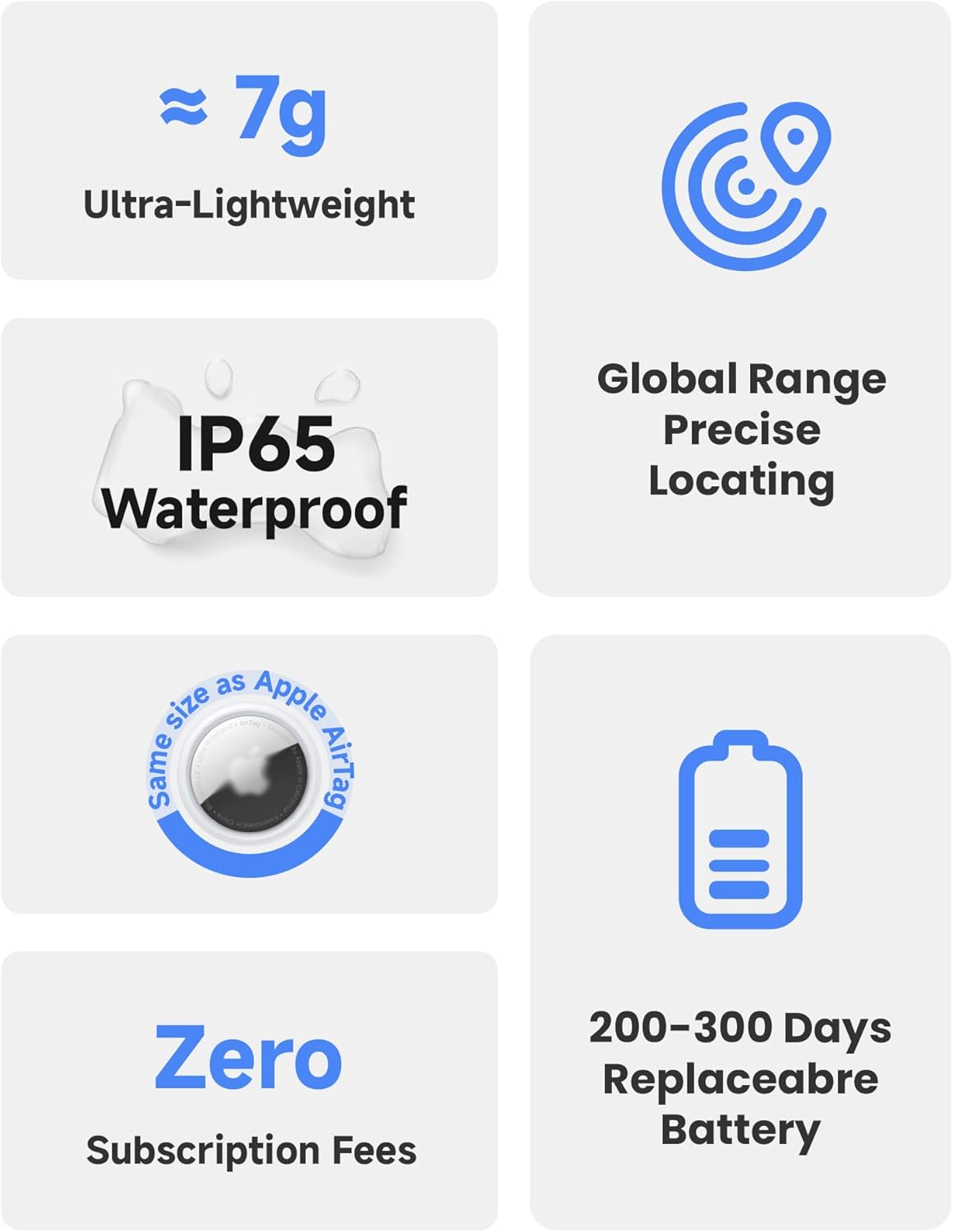 - 【Encrypted Data Security】 No need to download other unknown apps that may collect your data. Both iOS and Android's Find My Networks are encrypted and anonymous. The data and location history of your items will never be stored on our item locator.