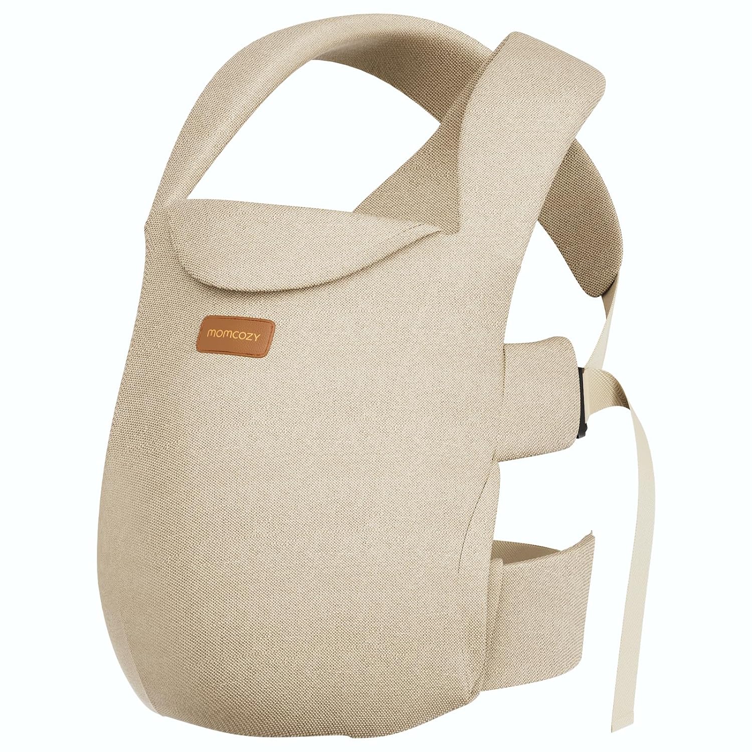 Momcozy Newborn Carrier WeeSnug- Lightweight and Cozy Comfort for 7-25 lbs, Ergonomic Cross-Back Support, Effortless to Put On, Hands-Free Baby Carrier with Lumbar Support, Khaki
