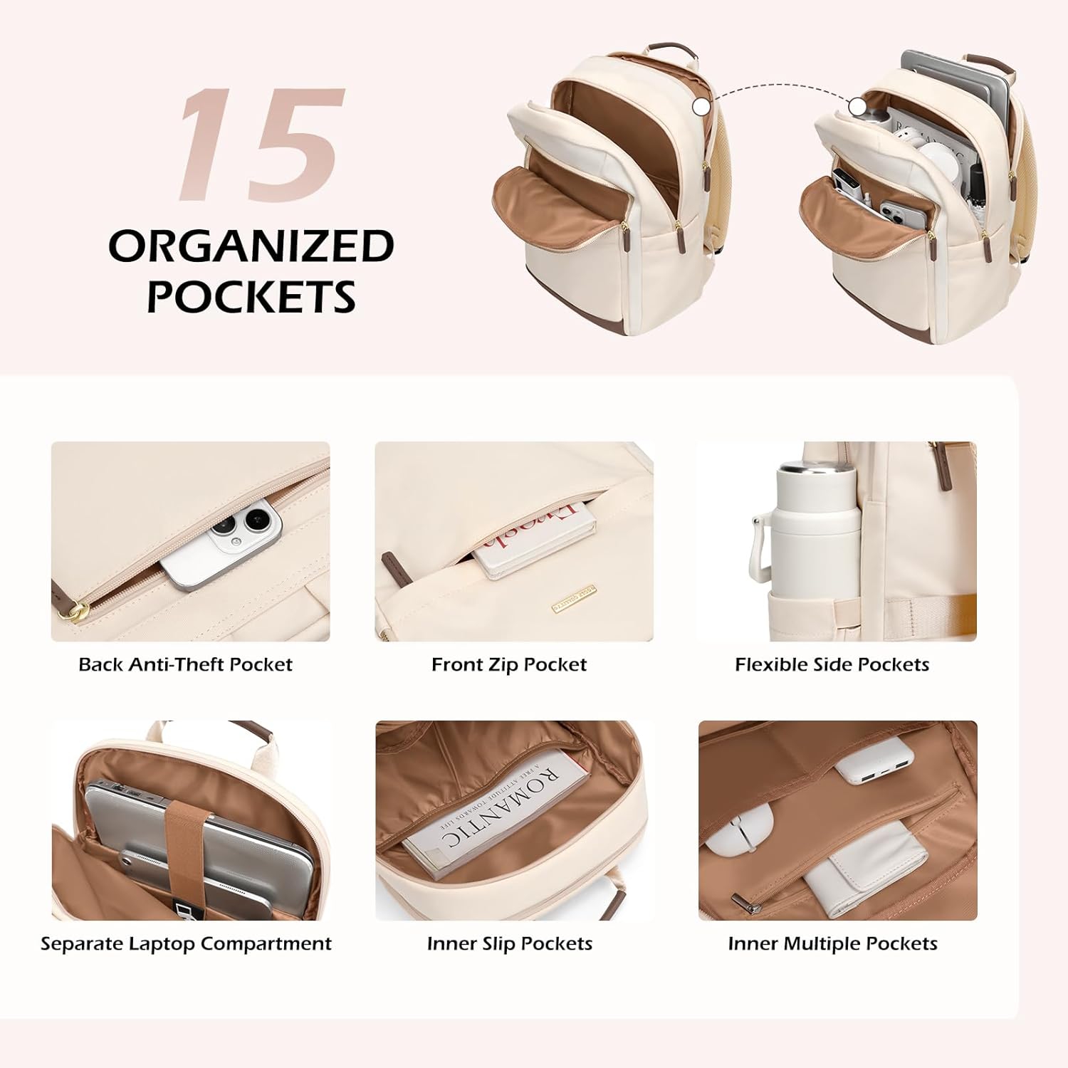 Laptop Backpack for Women Travel Carry On Bag Weekender Business Multilayer Personal Item Backpack,16 Inch,WApricot