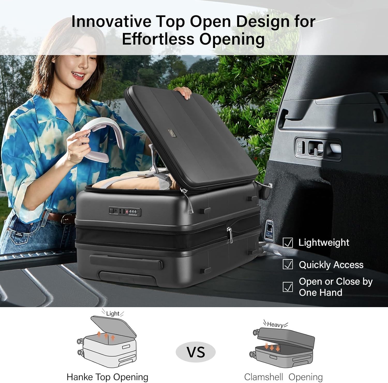 - Durable 3-Layer 100% PC Hard Shell: hanke hardside suitcase delivers exceptional impact resistance without the bulk. The shatterproof material prevents cracking. Lightweight yet 30% tougher than standard checked luggage materials – perfect for rough baggage handling