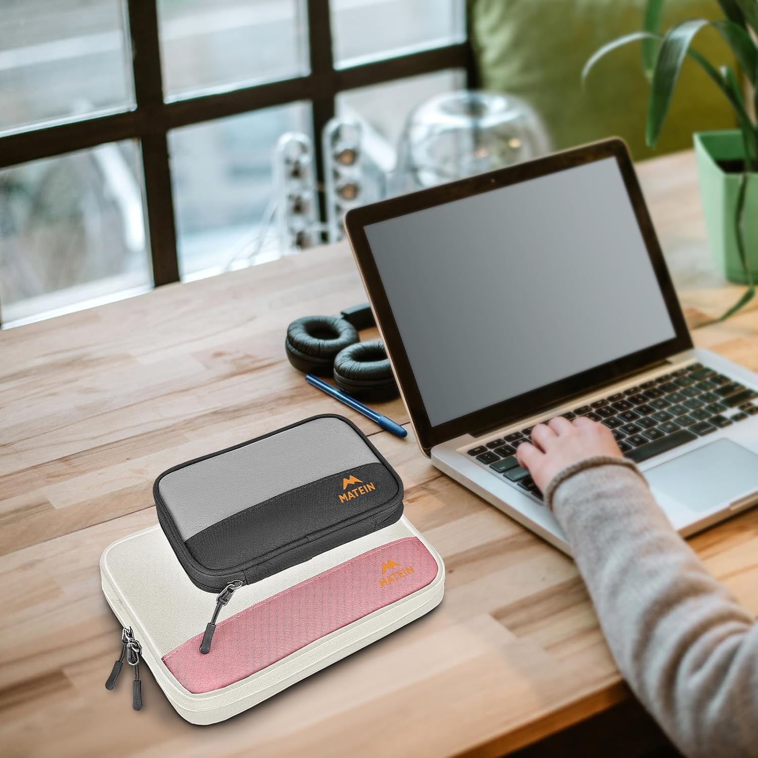 MATEIN Tech Organizer Travel Case 2 Pack for Couple, Water Resistant Charging Cord Organizer for Travel Accessories, Portable Electronics Bag for Purse, Cable, Phone & Wireless Mouse, Gifts for Work