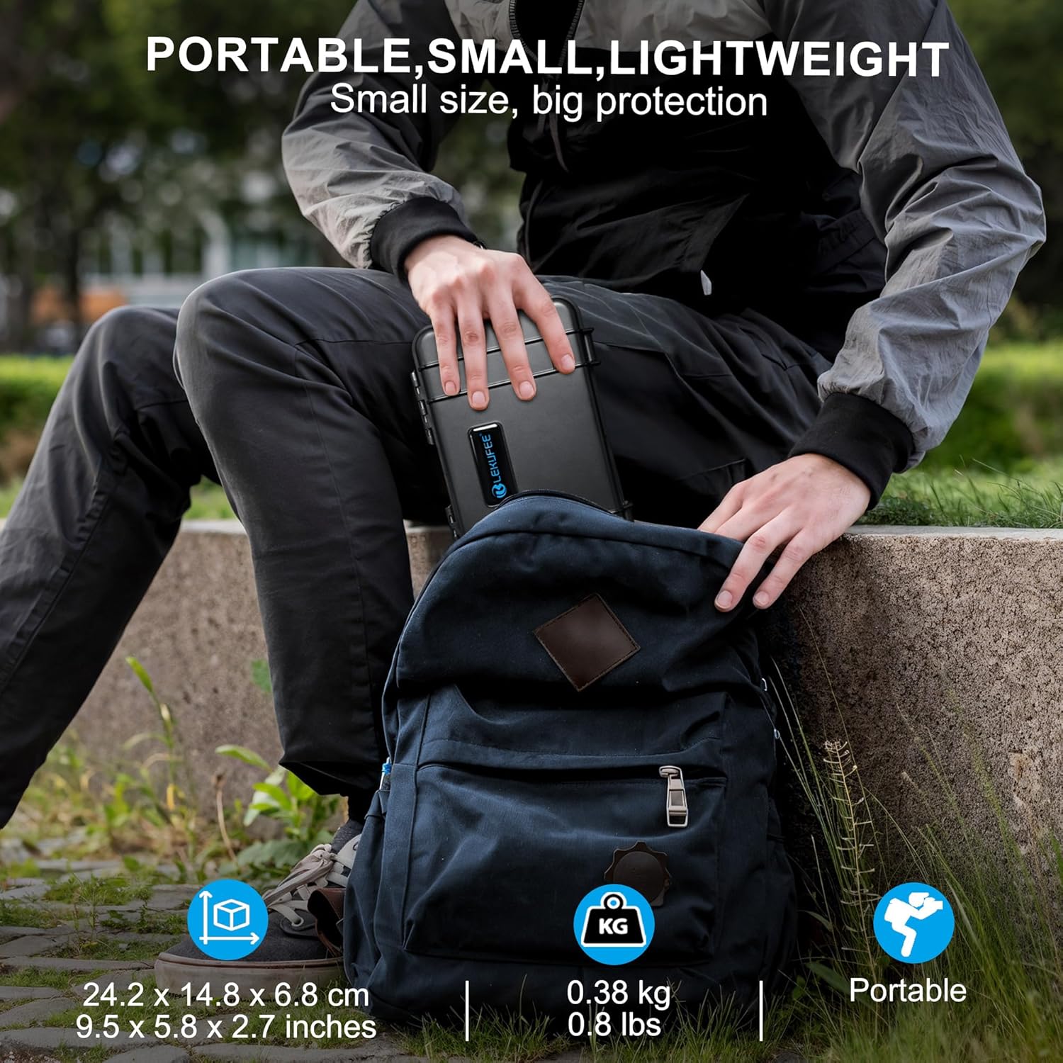 - Travel Portable: Weight 0.38 kg (0.8 lb), External Dimensions: 24.2 x 14.8 x 6.8 cm (9.5 x 5.8 x 2.7 in).This Gopro Hero 13 storage bag effortlessly fits into backpacks, suitcases, or even pockets. Use the included metal hook clip to fasten the case to your belt, bag for quick, on-the-go access to your Gopro Hero 12 accessories. lightweight design perfect for travel.