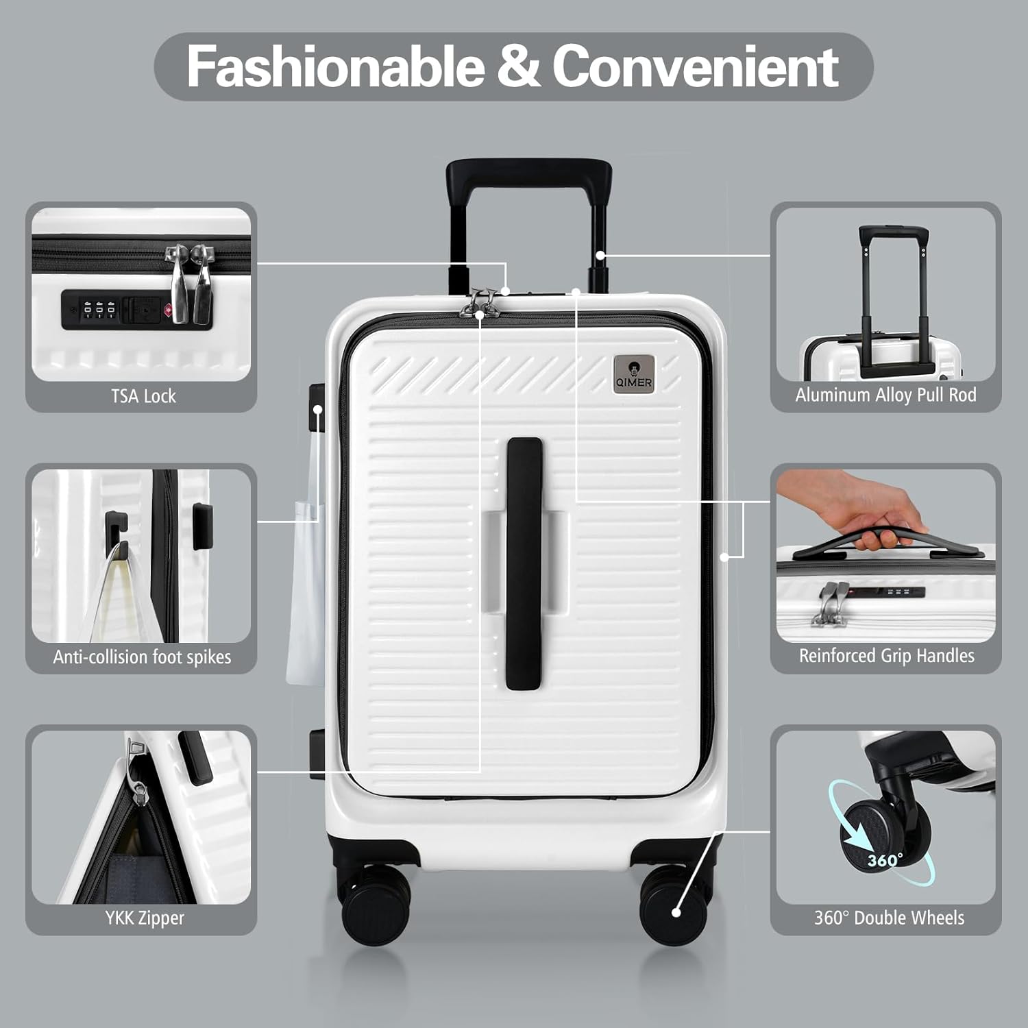 - Expandable Capacity: QIMER suitcase features a zippered expansion mechanism that expands, providing 15% more storage space. Dimensions: 21.06 x 13.58 x 11.02 in (Expanded: 21.7 x 13.58 x 12.52 in). Effortlessly fit in those extra souvenirs or travel essentials, making the most of every journey.