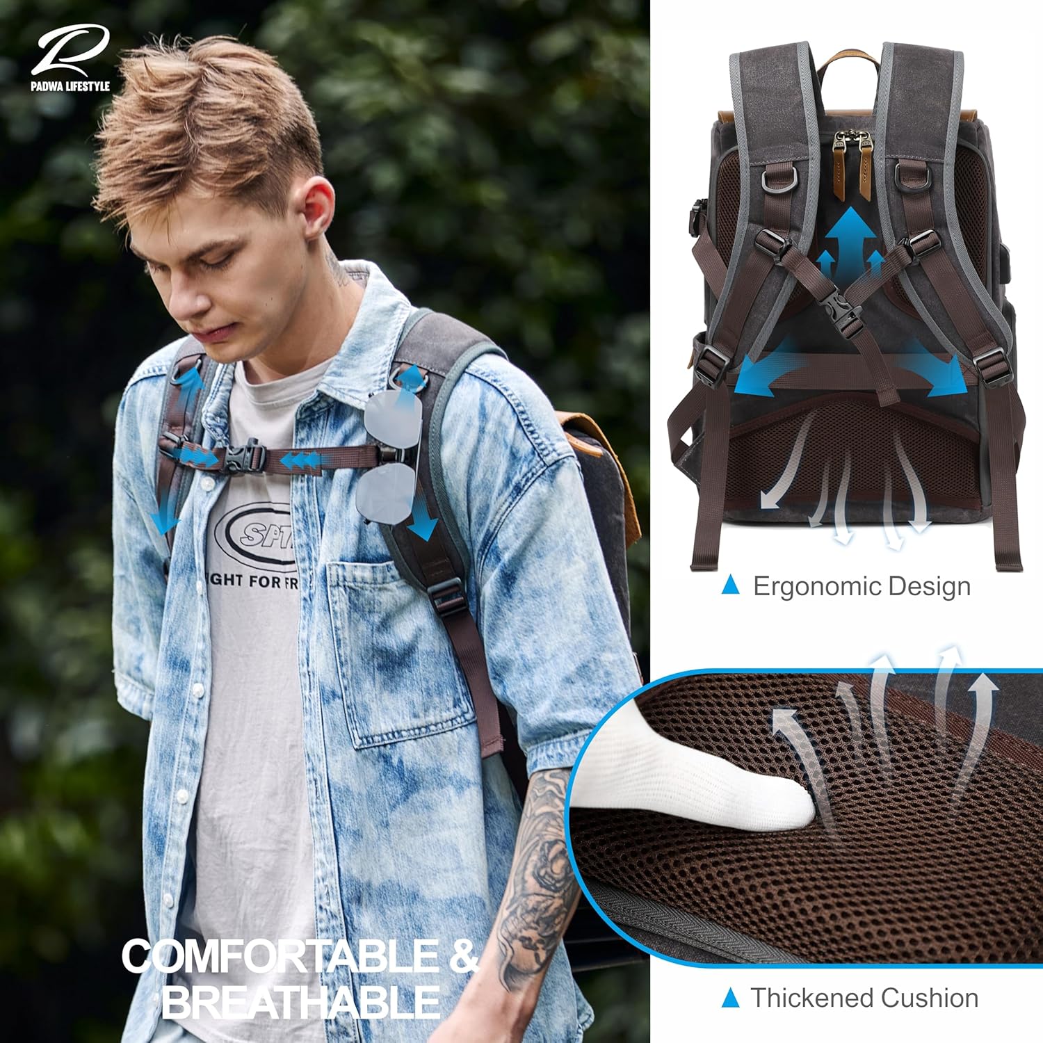 Padwa Lifestyle Black Gray Camera Backpack - Weather Resistant Waxed Memory Canvas Camera Backpacks for Photographers,Multi DSLR SLR Camera Bag with 16β Laptop & Lens Compartment and Tripod Holder