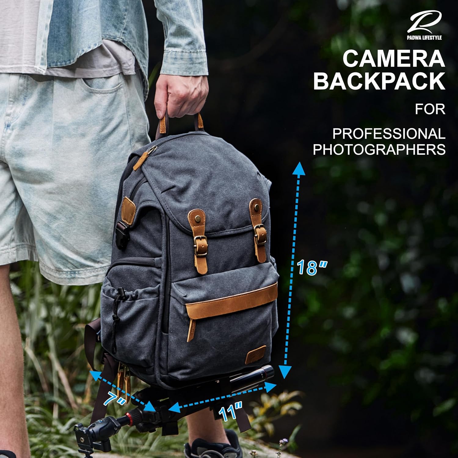 Padwa Lifestyle Black Camera Backpack - Professional DSLR & UAV Camera Bag,Anti Theft Canvas Camera Backpack with Rain Cover,Large Capacity Photography Travel Camera Bag with Multi Compartments