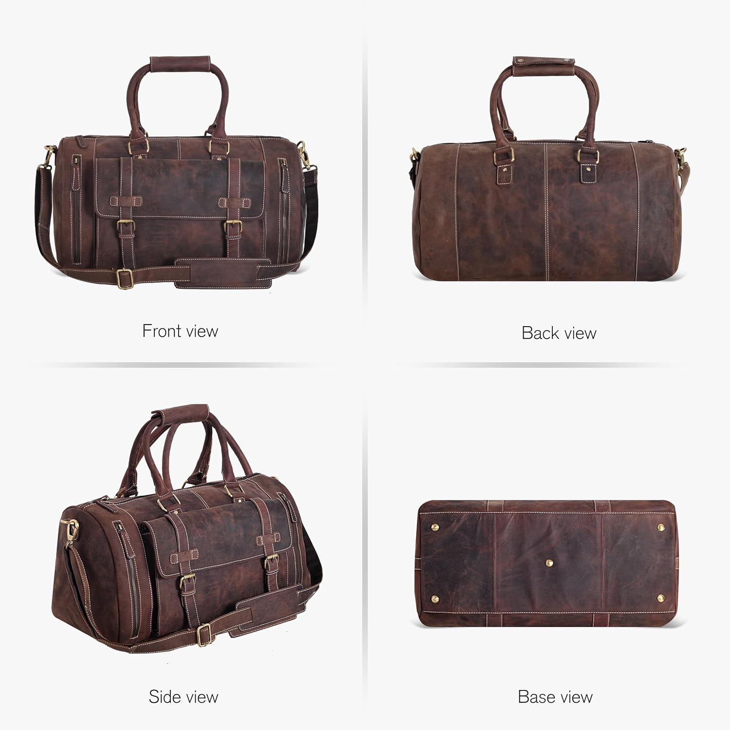 Genuine Leather Duffle Bag for Men | Vintage Weekender Travel Bag | Overnight Carry-On Luggage | Handmade Leather Gym Bag for Men