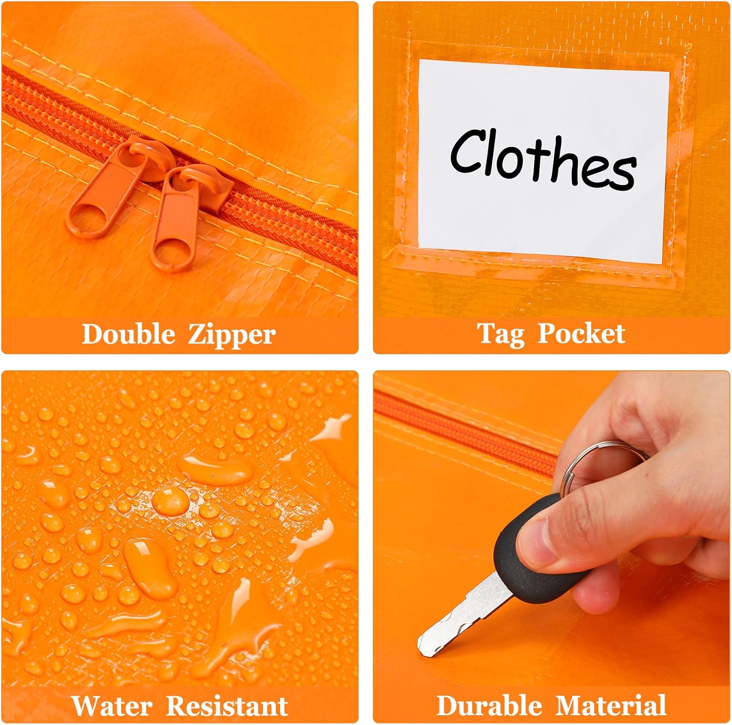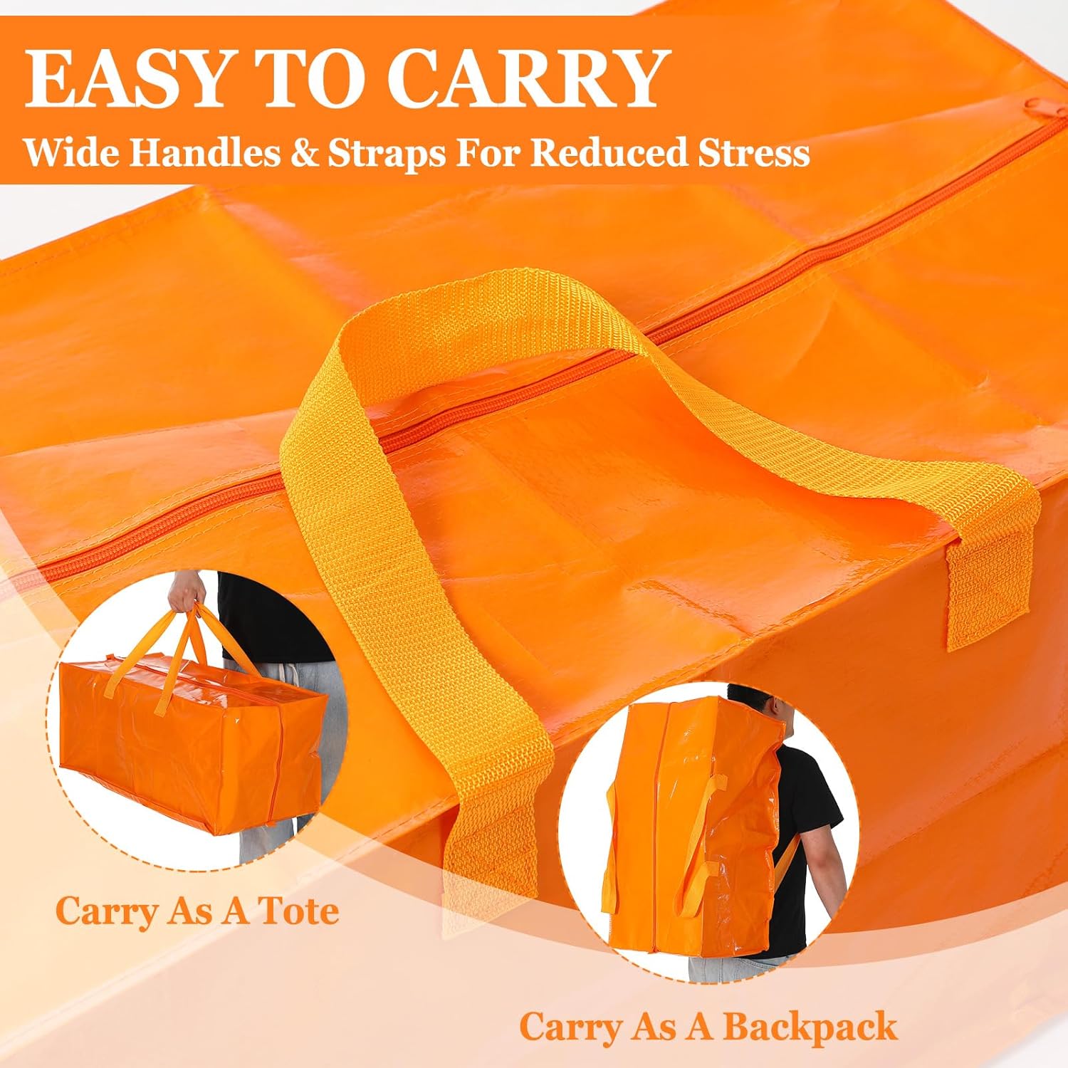 4 Pcs 24 Gallon Large Moving Bags with Zipper and Handles Foldable Storage Duffle Bags Heavy Duty Extra Large Totes for College Dorm Travel Clothes Blankets Bedding Moving (Jelly Orange)