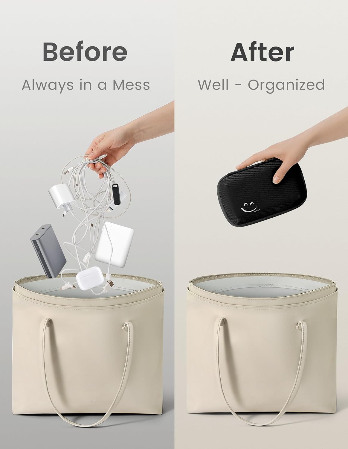 - Portable and practical charging cord organizer. This small travel cord organizer features a smooth - zip closure and an ergonomic hand strap for easy carrying. Ideal for work, travel, or daily use, it keeps your devices and accessories organized on the go