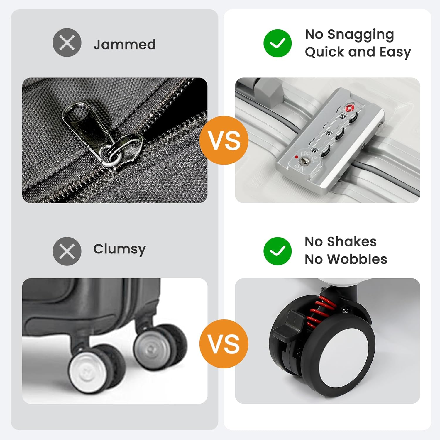 Carry On Luggage 22x14x9 Airline Approved, Zipperless Luggage Carry On, Hard Shell Suitcases with TSA Lock, Lightweight Carry On Suitcases with Aluminum Frame (white, 20inch)