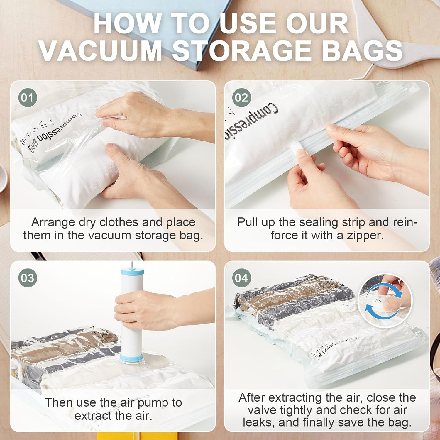 • 【One bag, endless possibilities】Pair your travel bag with vacuum storage bags to compress bulky jackets, isolate dirty laundry, and organize small items with ease. Everything stays neatly in place – find what you need in a glance!