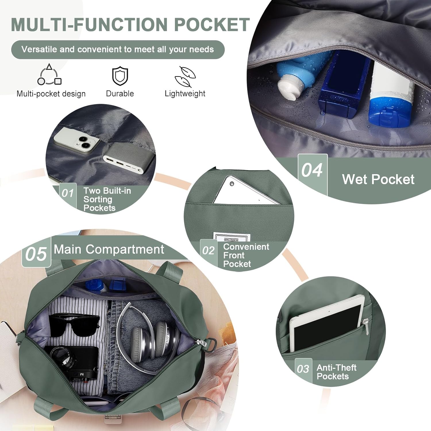 Travel Duffel Bag, Sports Tote Gym Bag, Shoulder Weekender Overnight Bag for Women