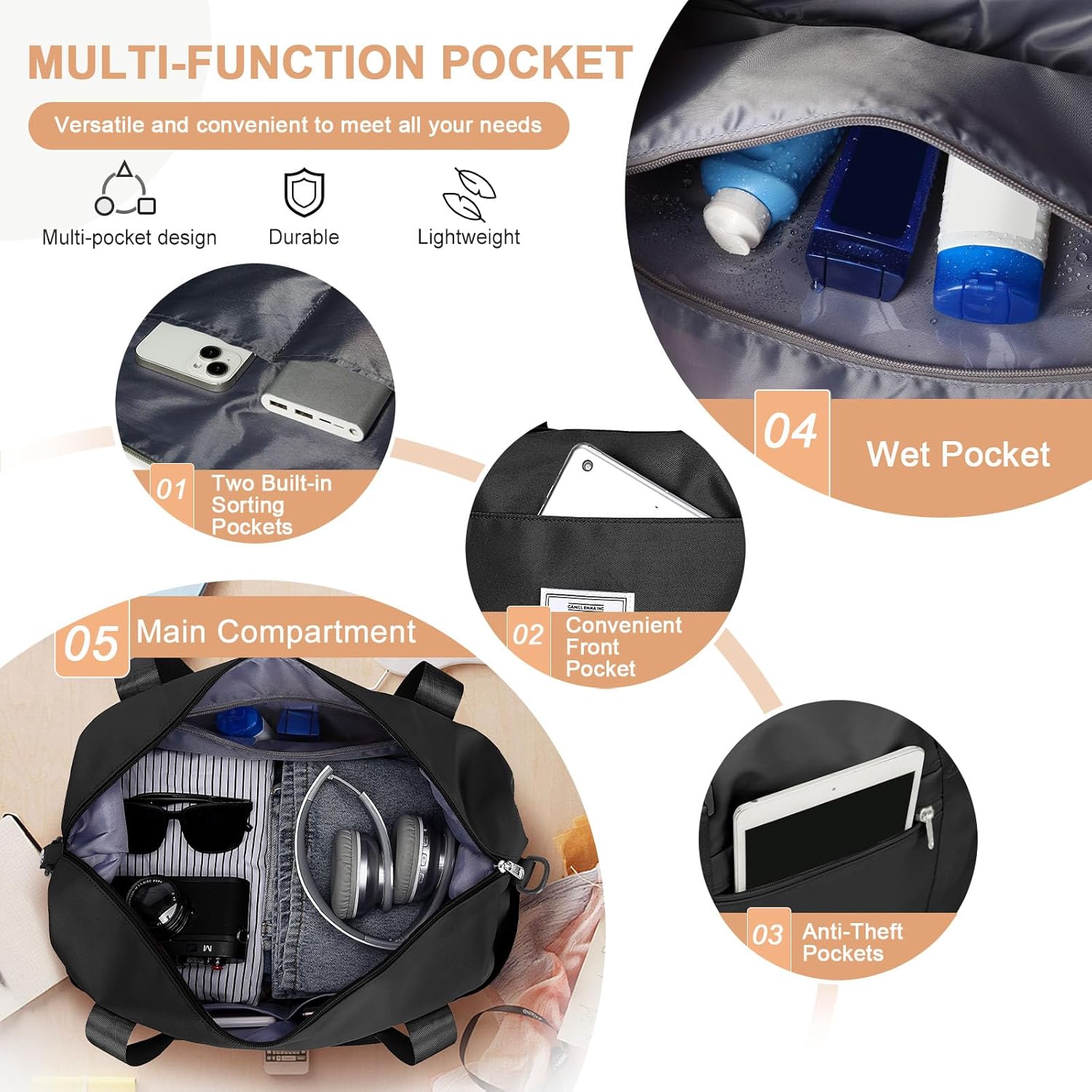 Travel Duffel Bag, Sports Tote Gym Bag, Shoulder Weekender Overnight Bag for Women