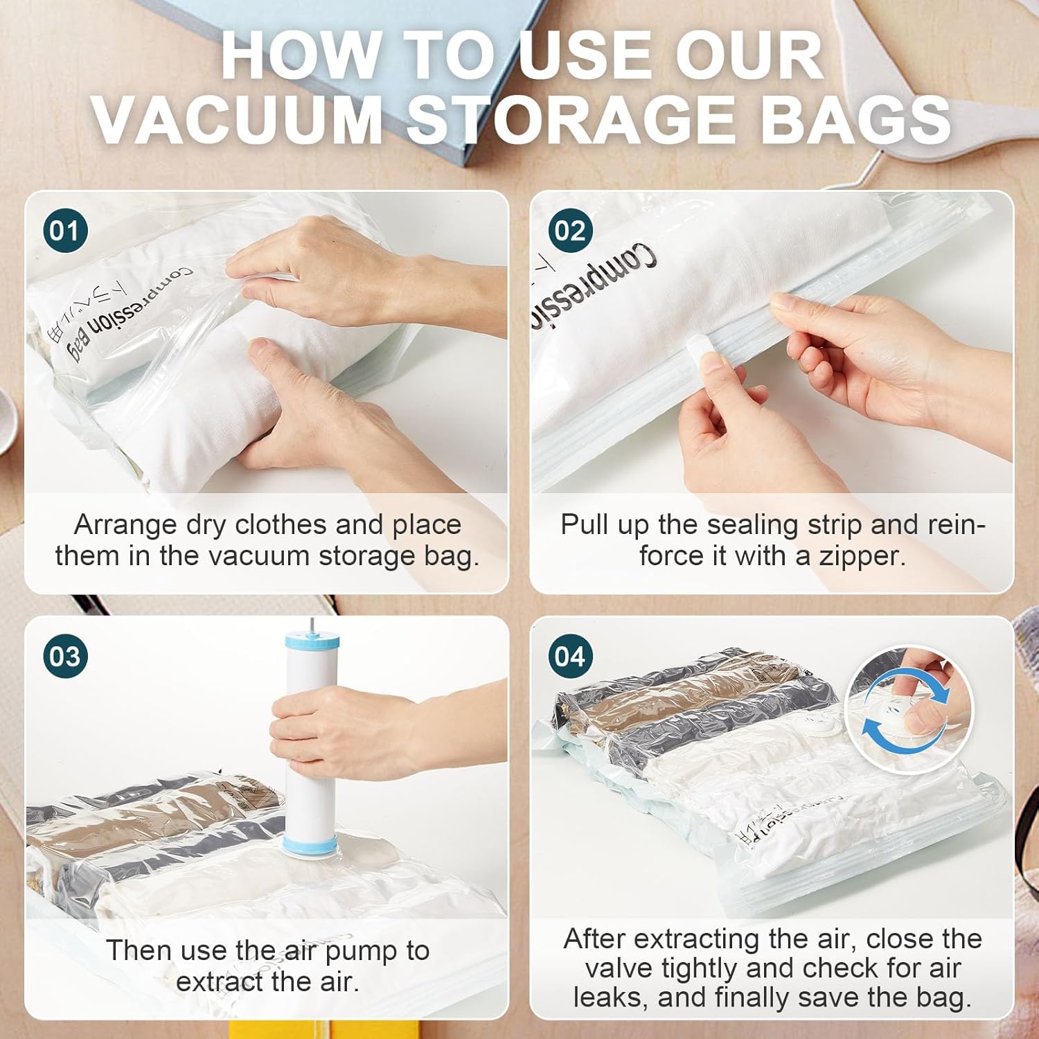 - 【Expanded storage capacity】This travel bag comes with vacuum bags and a manual pump, which are easy to use and require no effort. It can significantly reduce the space taken up by stored items, making it ideal for everyday storage or travel packing, helping you save space.