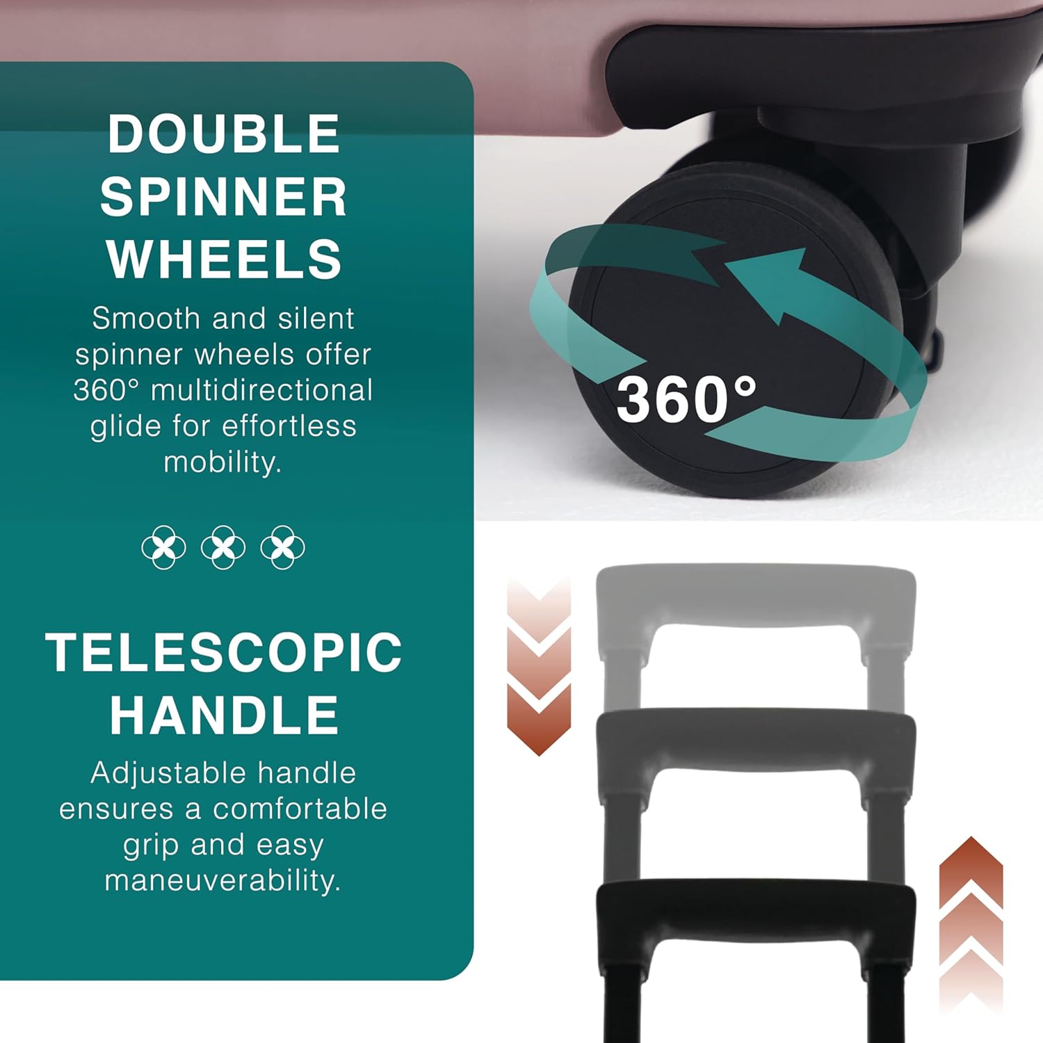 - Travel Luggage with Spinner Wheels: Our 28 inch luggage with spinner wheels provides smooth 360° movement. This rolling suitcase, hardshell luggage includes a telescoping handle, stainless steel name tag, and TSA lock.