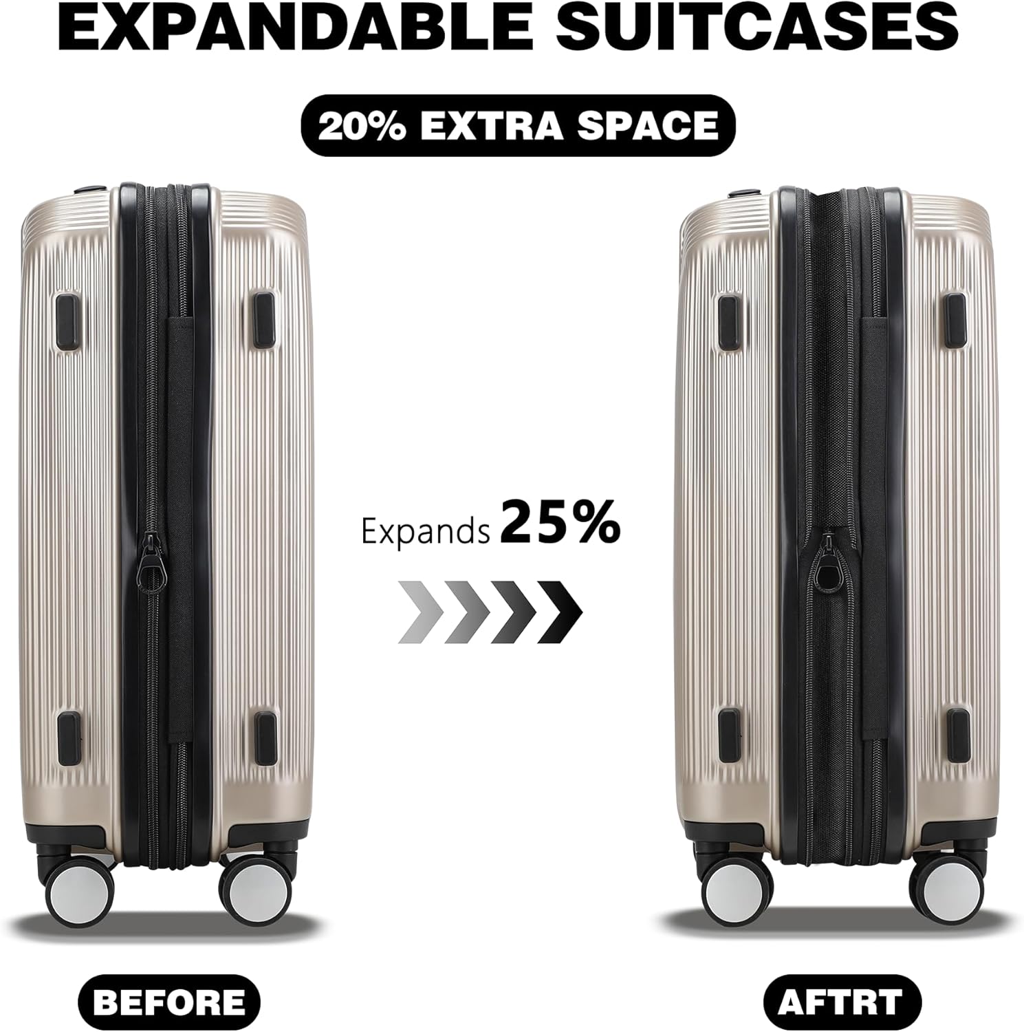 20 Inch Lightweight Expandable Carry On Luggage, PC Hardside Suitcase with Spinner Wheels & TSA Lock, Carry-on 20-Inch, Champagne