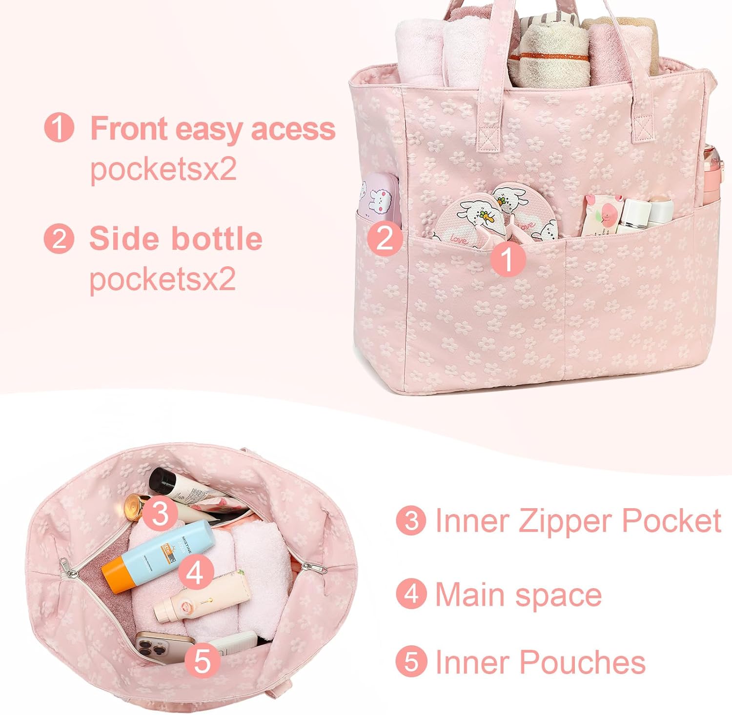 - Separate wet compartment: Unlike other beach tote bag, this one is up-graded with separate waterproof wet compartment which you can put into some wet stuff Toiletries, wet swimsuit and towels, keep other items dry all the day.