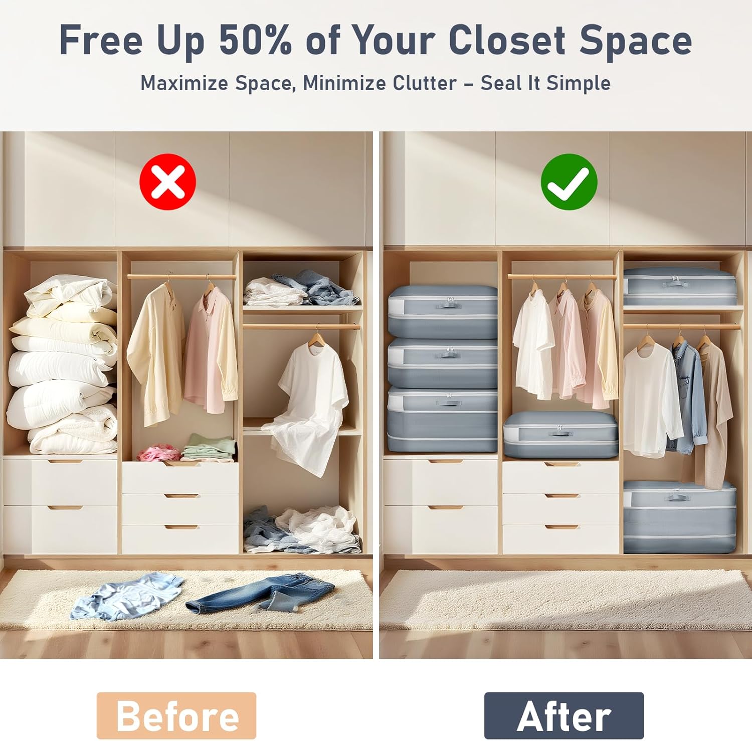 - Washable, Tear-Resistant, and Durable: Unlike non-woven bags and ordinary vacuum compression bags, our comforter storage bag are made from upgraded nylon fabric that is tear-resistant, washable, odor-free, and mildly water-resistant. These features protect your space-saving storage bags from moisture, and wear, making them essential home storage essentials