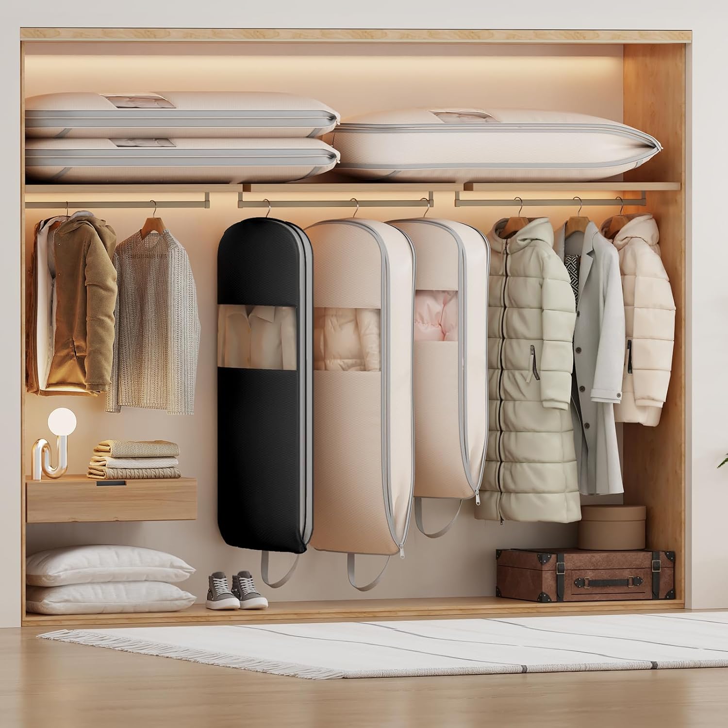 - 【Easy-ID Clear Window】: The built-in transparent panel lets you quickly identify contents without unzipping, while the side-access zipper allows convenient retrieval of hanging clothes directly from your wardrobe
