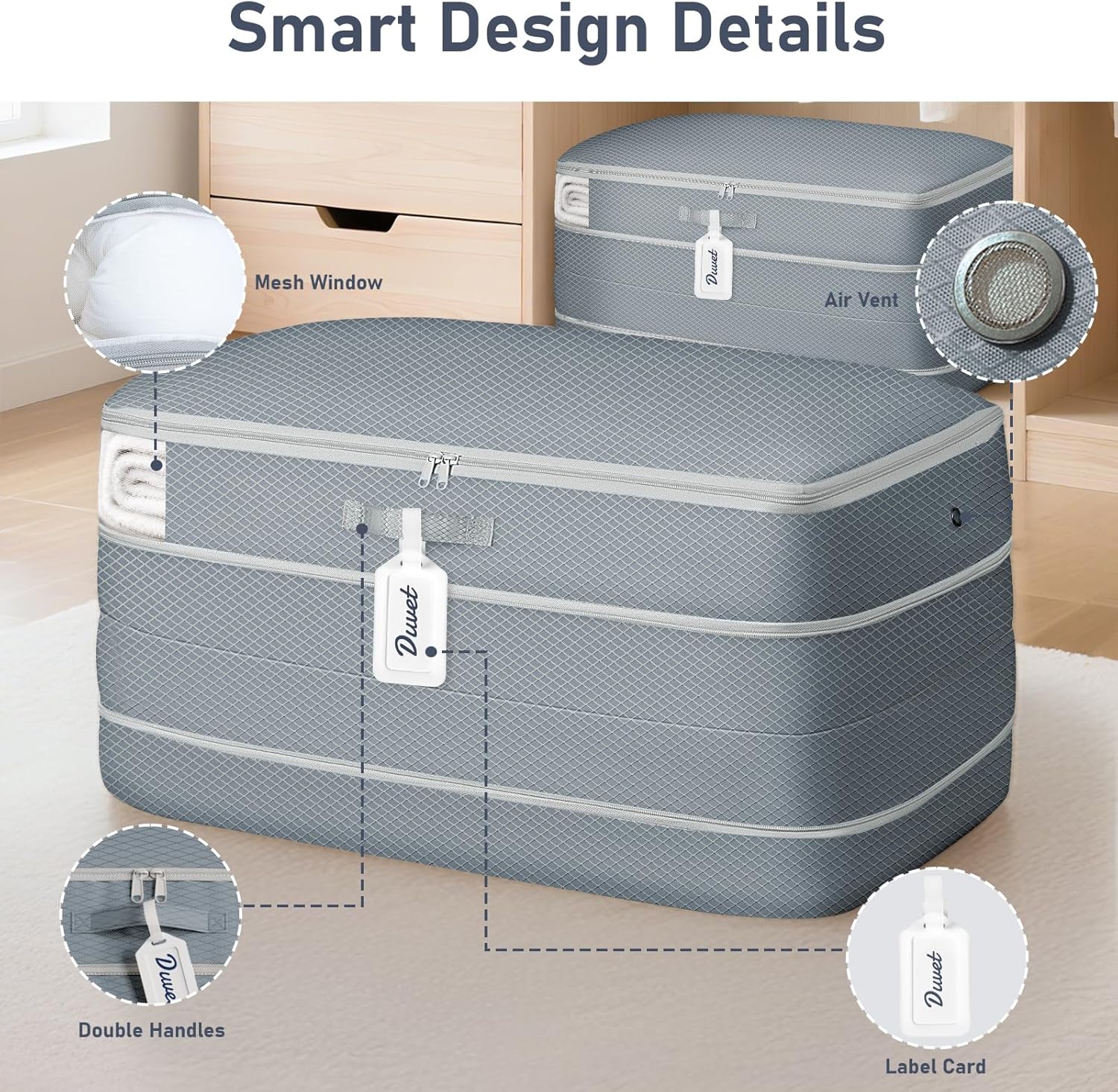- 100L Extra Large Capacity: This compression bag for storage can accommodate 2 winter queen comforter, or 6-7 blankets, or 4 bedding sets, or5-7 sheets, or 3-4 pillows, giving you more flexibility in storage space management. Note: After receiving your blanket storage bags, you can wash or iron it before use to smooth out any wrinkles that may have occurred during shipping
