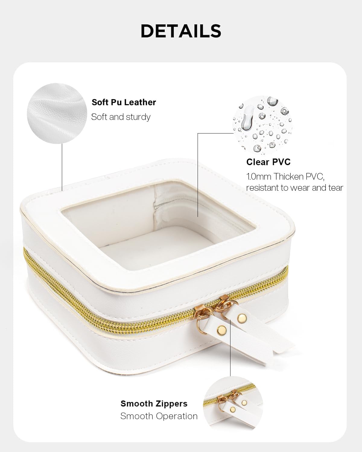 - Waterproof and Easy to Clean: The cosmetic bags for women is made of made of PU material, which is wprovides a protective barrier against water and moisture. Only need wiped clean with a damp cloth to keep your travel bags neat and clean. Together with the beautiful stitches and compact leather zippers, is durable for long-lasting use
