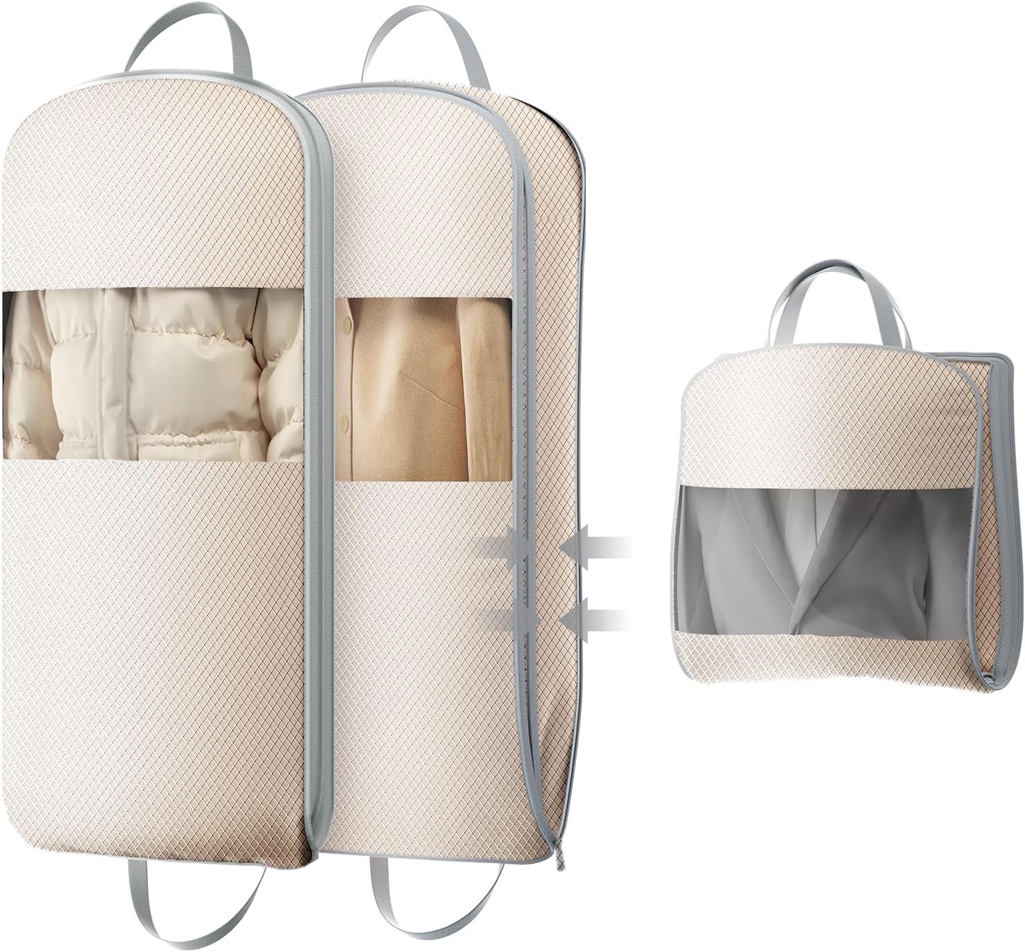 - 【Easy-ID Clear Window】: The built-in transparent panel lets you quickly identify contents without unzipping, while the side-access zipper allows convenient retrieval of hanging clothes directly from your wardrobe