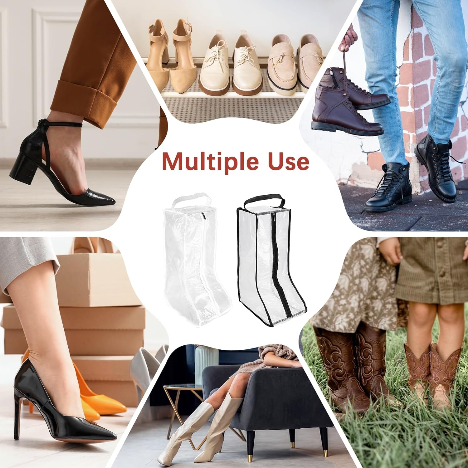 - GREAT CHOICE: Made from high-density, waterproof PVC material, these clear boot storage bag are lightweight, abrasion-resistant, ensuring durability and optimal protection for your shoes. Our clear cowboy boot bag features a smooth zipper that ensures easy opening, secure closure and a convenient handle for easy carrying and hanging, and the transparent visible design allows you to quickly identify the shoes inside.