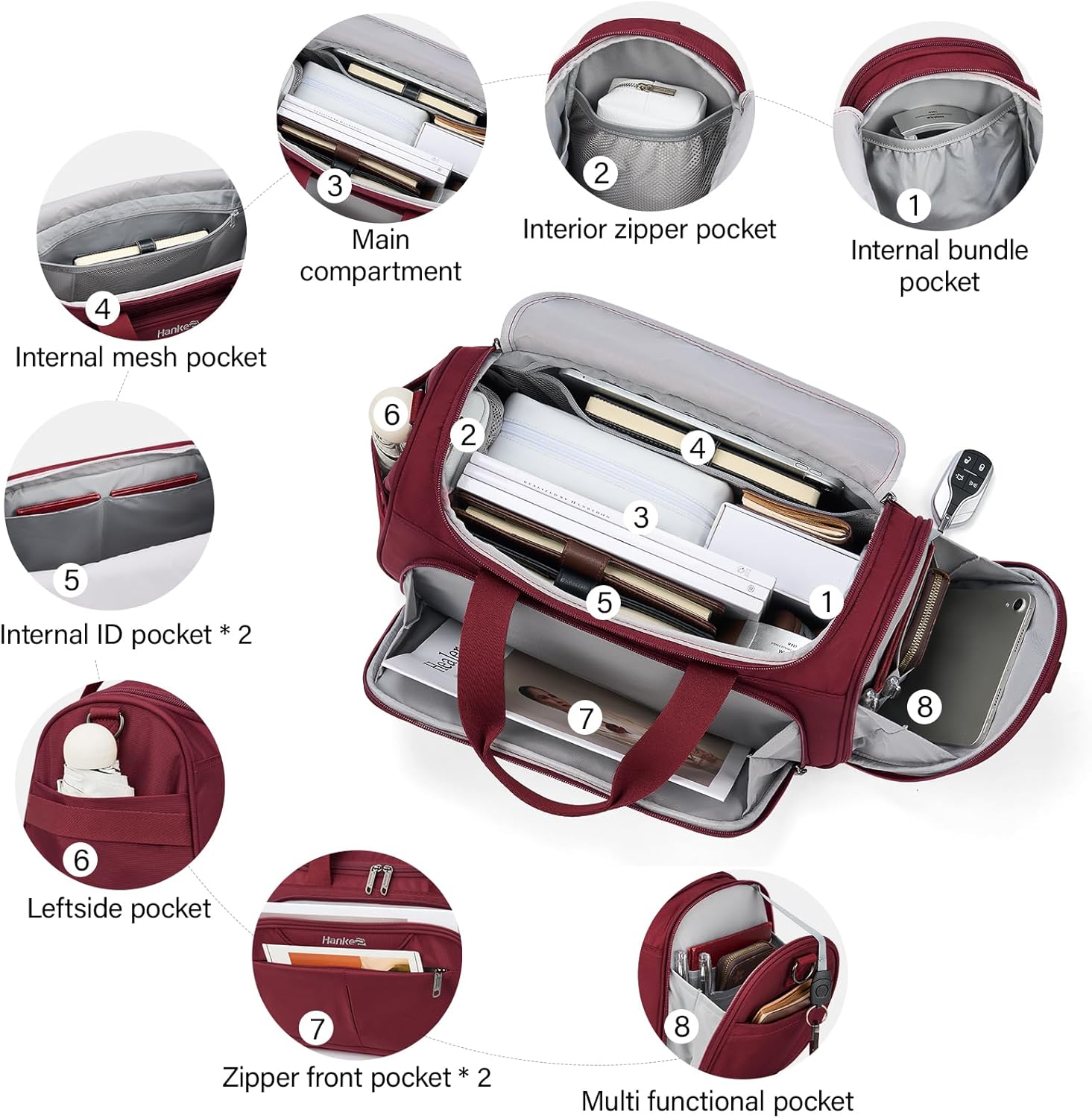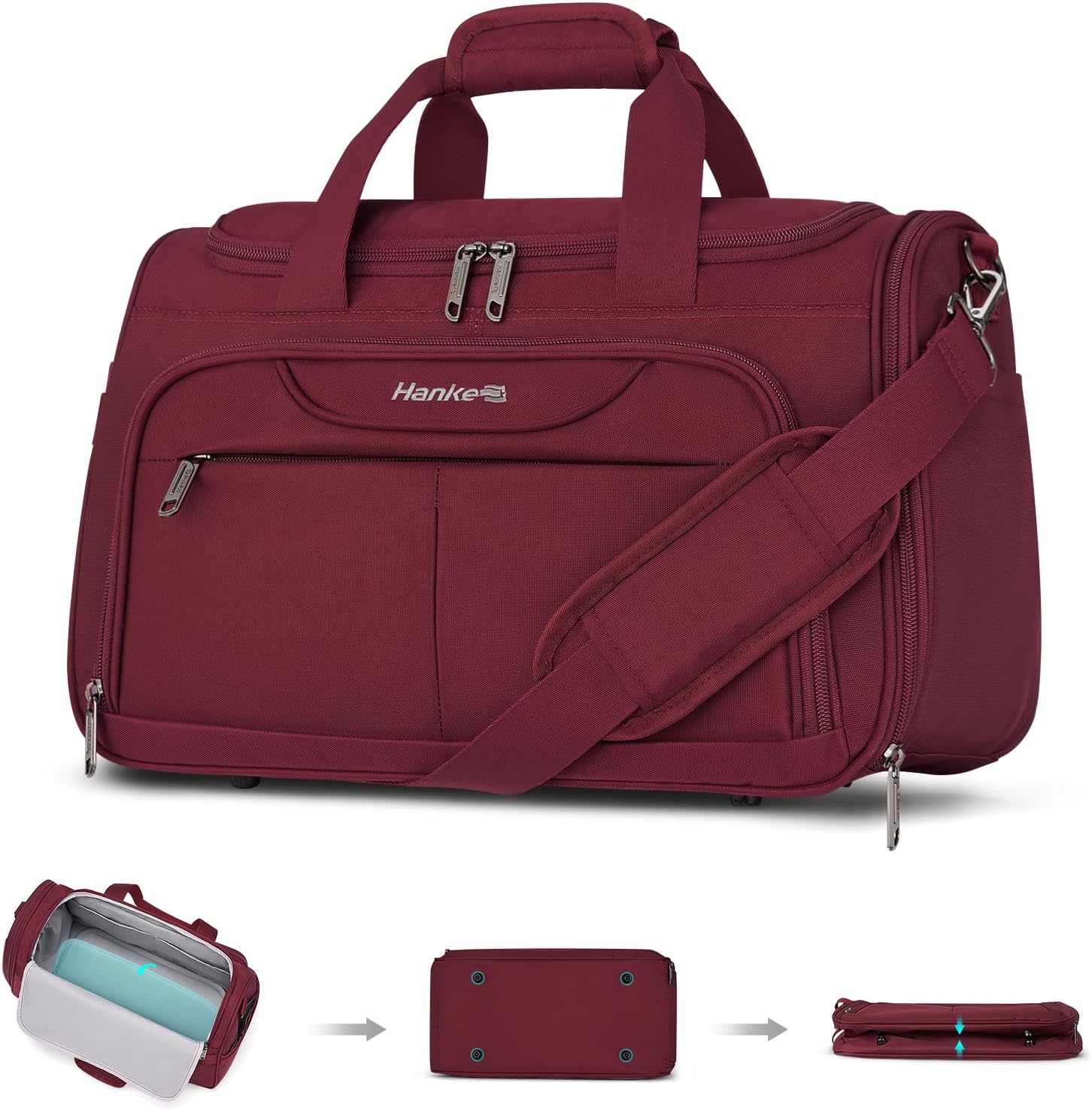 Hanke Underseat Carry On luggage Bags for Travel, Foldable Travel Bags for Women, Soft Lightweight Personal Item Travel Bag Small Carry On Bags for Airplanes, Travel Tote Bags for Women Men.(Burgundy)