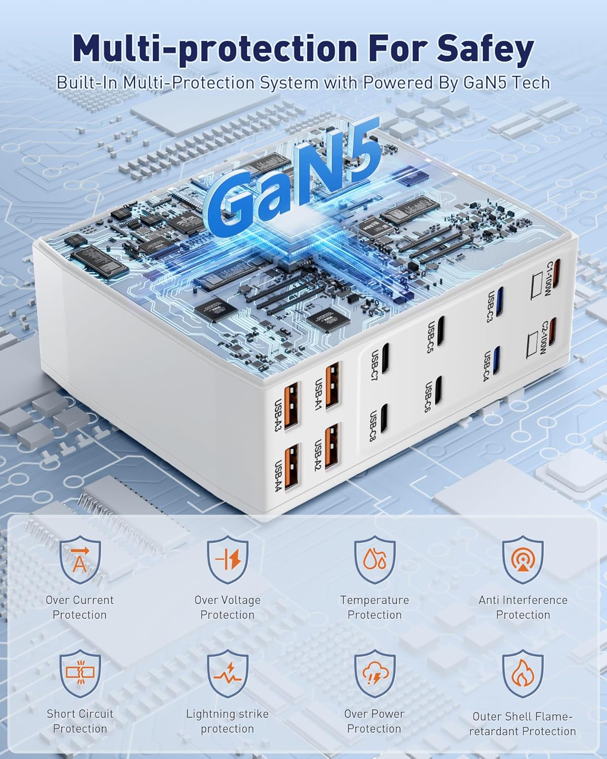 - ă12-in-1 USB C Charging StationăThis 600W USB C Charger Block comes with 8 USB C ports and 4 USB A ports to charge multiple devices, simplify your charging setup, and let you experience the convenience of ultra-fast and ultra-high output charging. With its smart charging technology, it can automatically detect and provide the best power output for each connected device, ensuring fast and efficient charging.