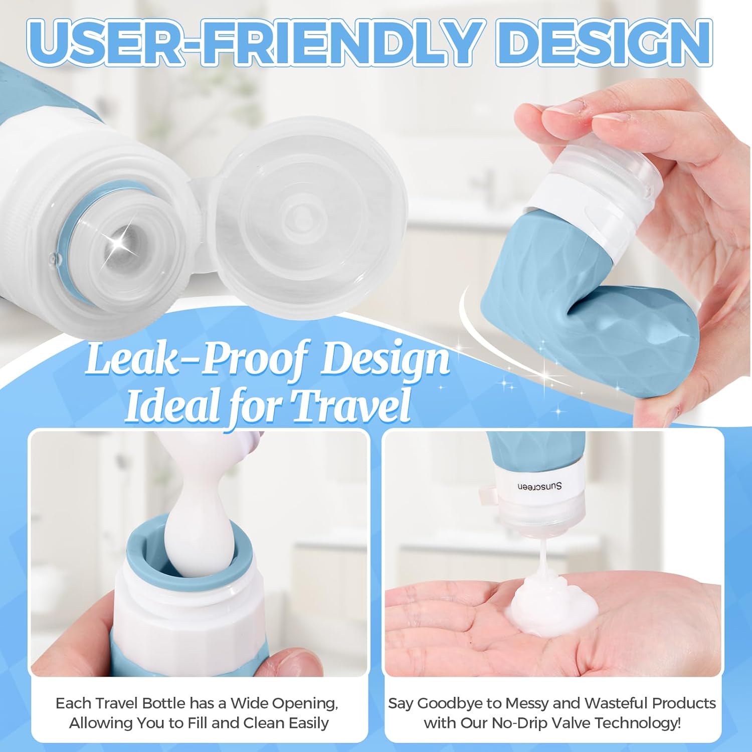 - 【16PCS TRAVEL TOILETRIES CONTAINERS】This Travel Set includes 4 silicone travel bottles, 4 silicone travel jars, 4 spoons, 2 silicone bottle covers, 1 printed label, and 1 clear zipper bag. It offers different accessories for your needs
