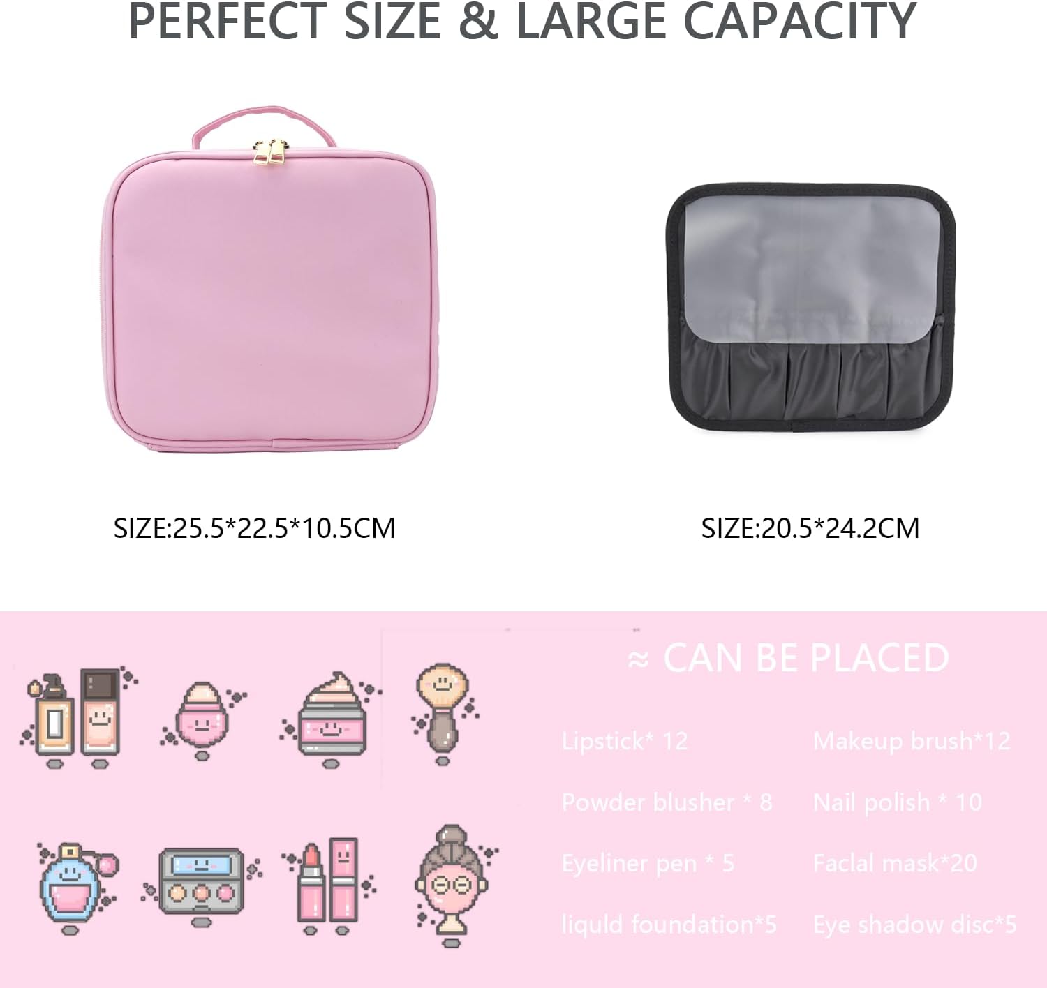 - 【walking powder room】the makeup bag with mirror is 10.3"x 9.1"x 4" and can hold most sizes and shapes of beauty makeup accessories, and the assembleable compartments are flexible enough to hold different sizes