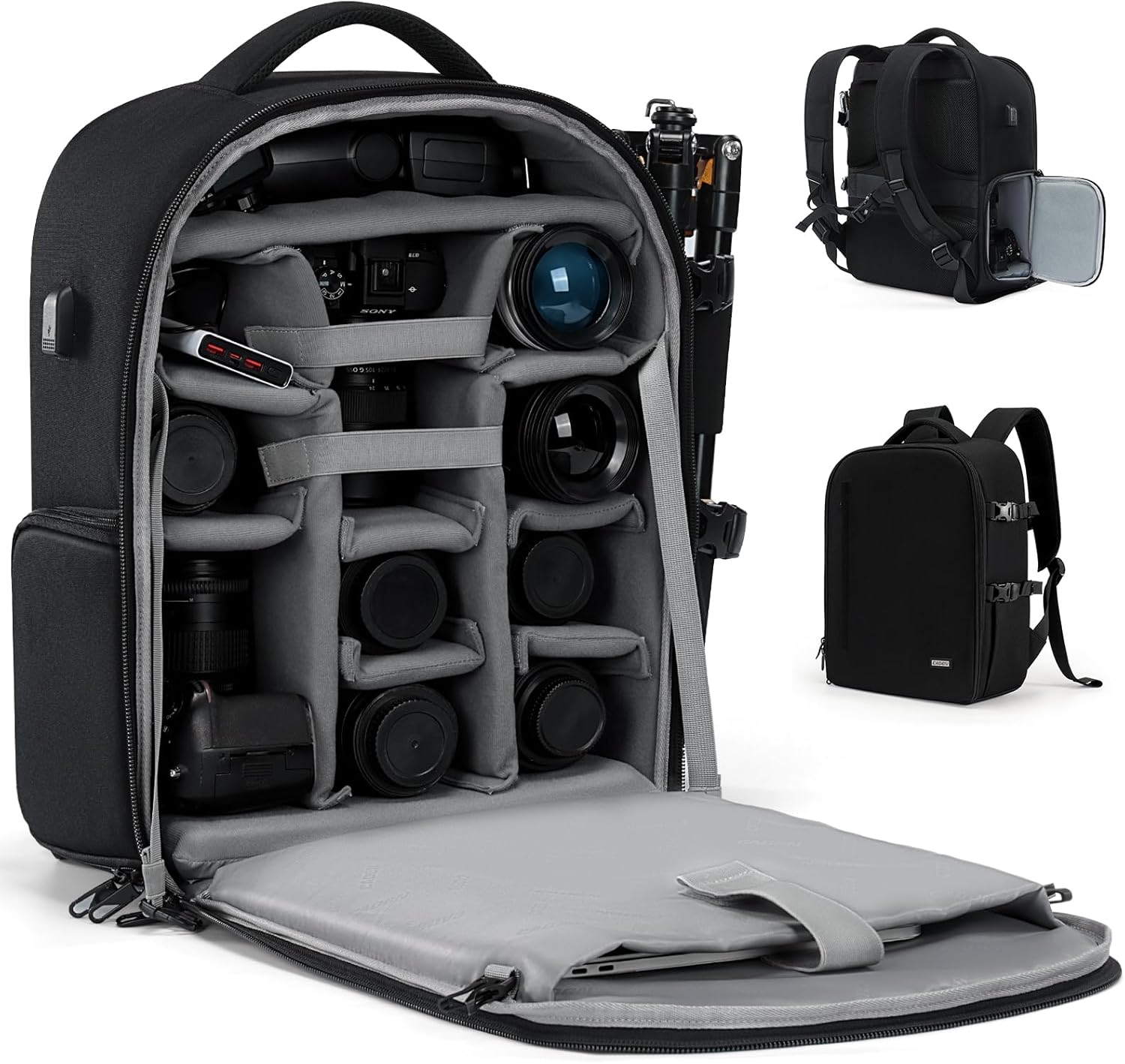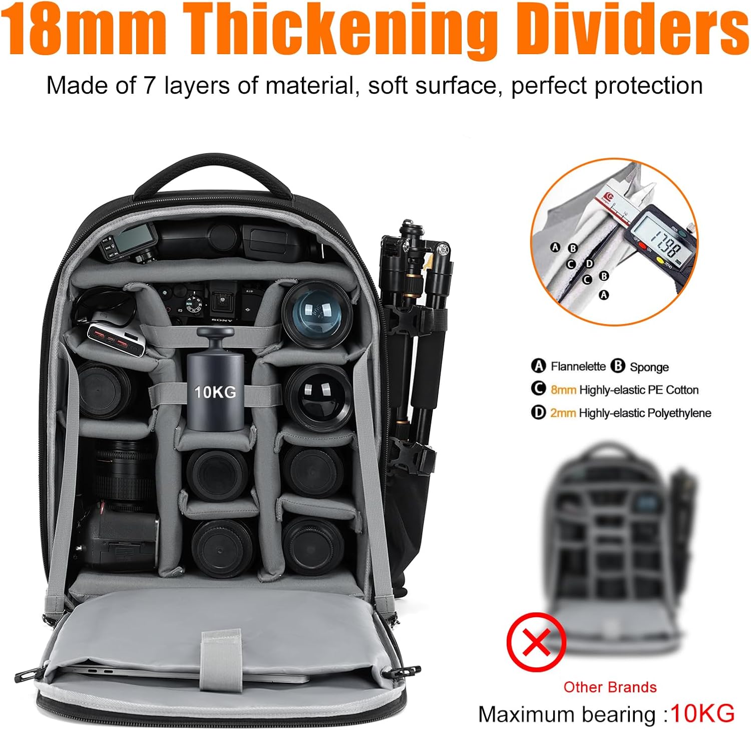 CADeN Camera Backpack, Extra Large DSLR Camera Bag with 17" Laptop Compartment, Waterproof Rain Cover, Professional Travel Hiking Camera Backpack Bag