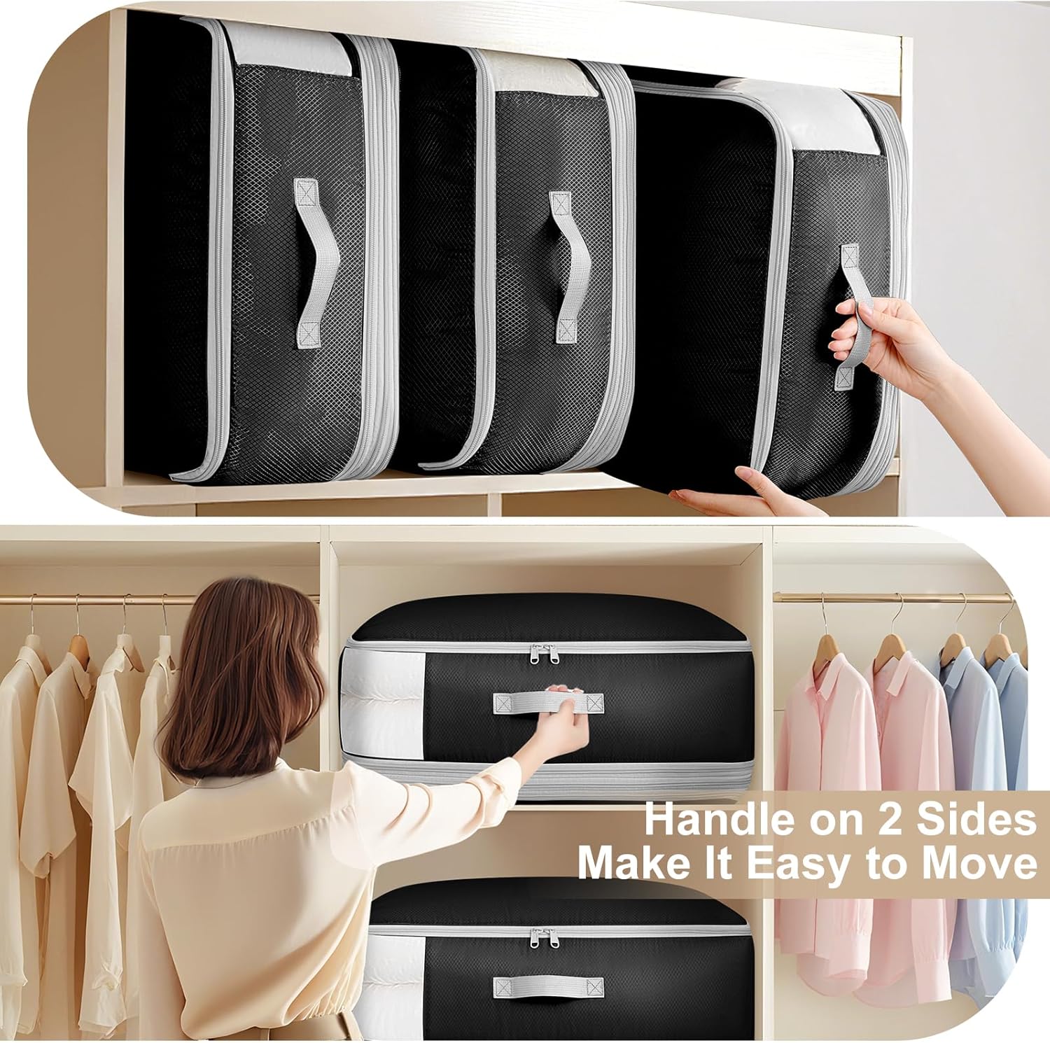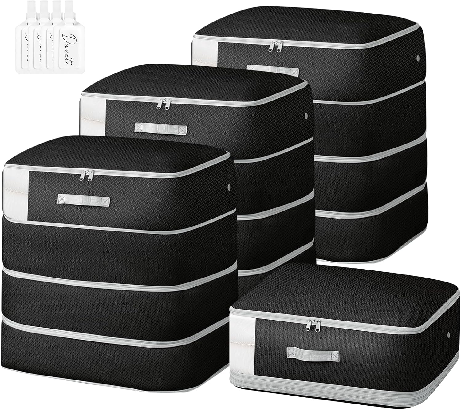 Comforter Storage Bag - 130L Large Capacity Blanket Storage Bags 4-Layer Ultra Space Saving Self Compression Organizer, Washable Compression Bags for Storage Comforter Blanket, 4-Pack, Black