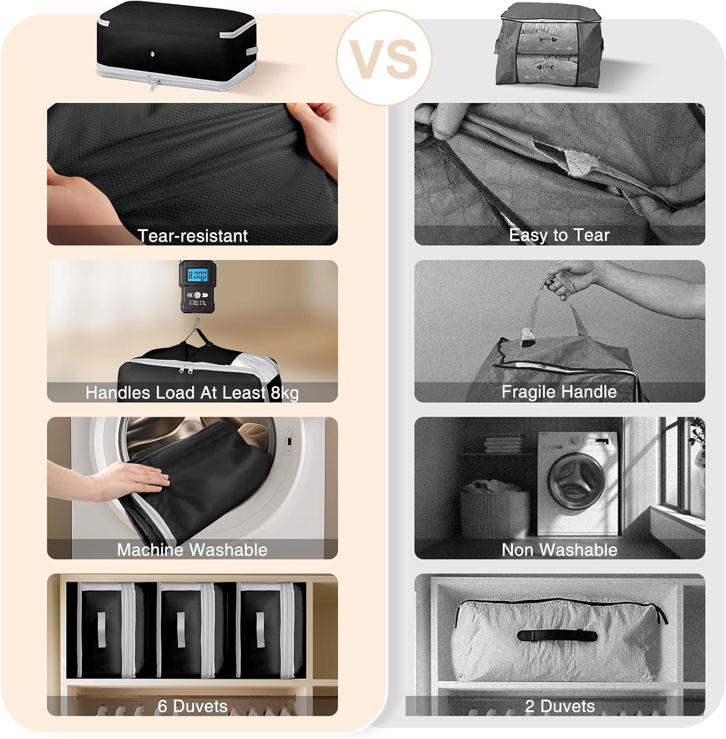 - [Washable & Tear-Resistant for Long-Lasting Use] Unlike non-woven bags and ordinary compression quilt bags,crafted from tear-resistant nylon fabric, our compression bags for storage are washable, odor-free, and slightly water-resistant. These features ensure that your bedding storage remains safe from dust, moisture, and wear, making it the ideal choice for protecting your household items long-term